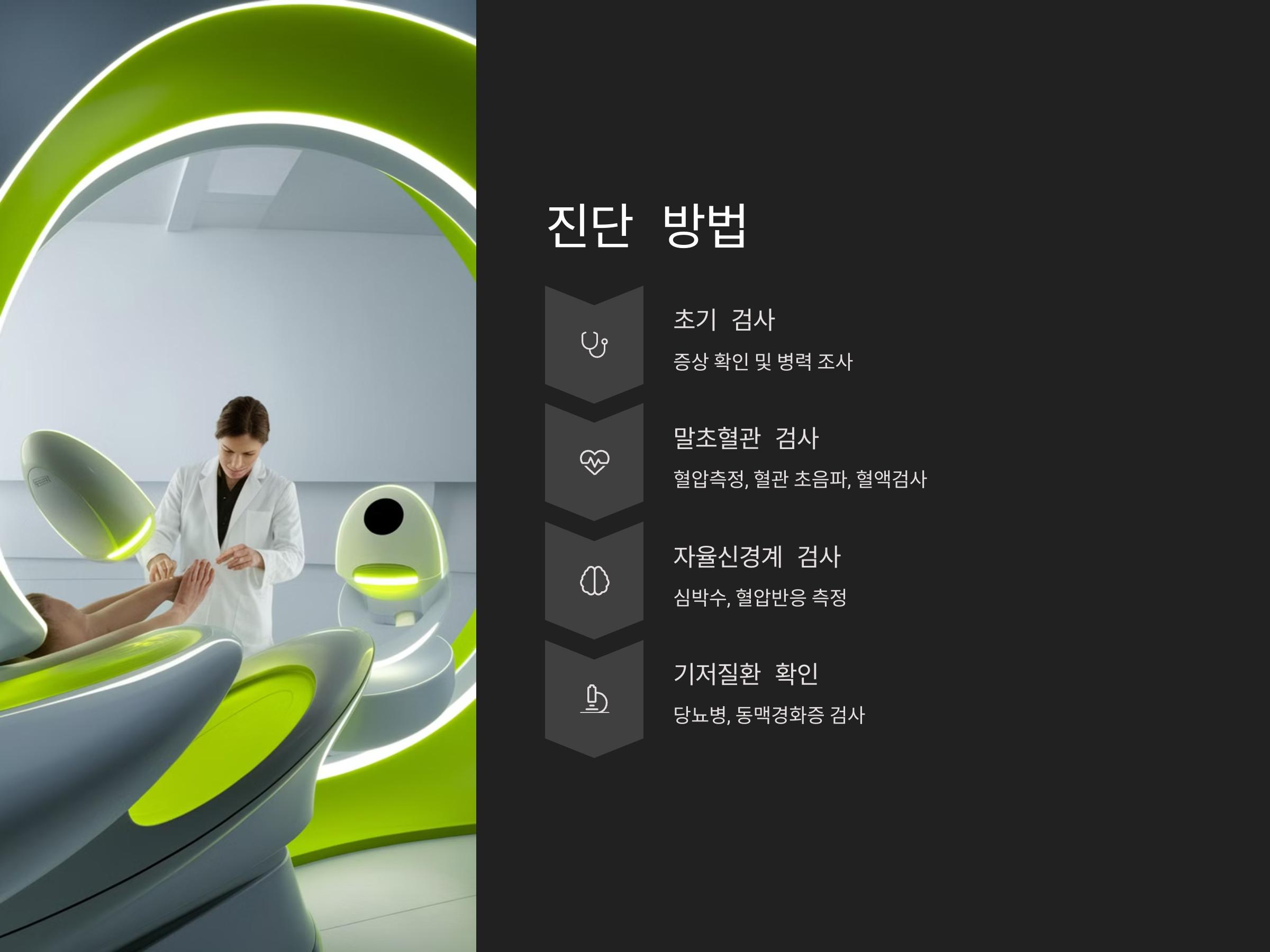 자율신경계 문제의 경우, 신경학적인 검사를 통해 자율신경계의 기능을 평가할 수 있습니다. 심박수, 혈압 반응 등을 측정하여 자율신경계가 정상적으로 작동하고 있는지 확인할 수 있습니다. 또한, 당뇨병과 같은 신경학적 질환이 원인인 경우, 해당 질환의 치료와 관리가 우선되어야 합니다.