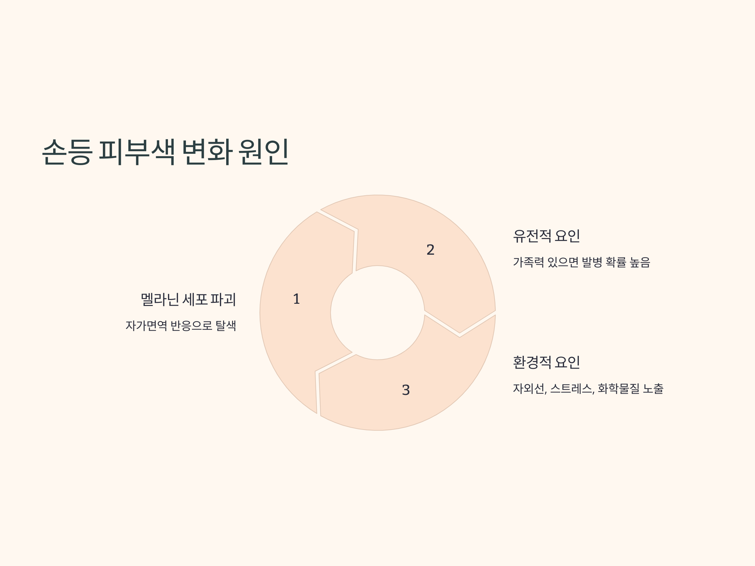 손등의 피부색 변화는 주로 다음과 같은 요인에 의해 발생합니다: