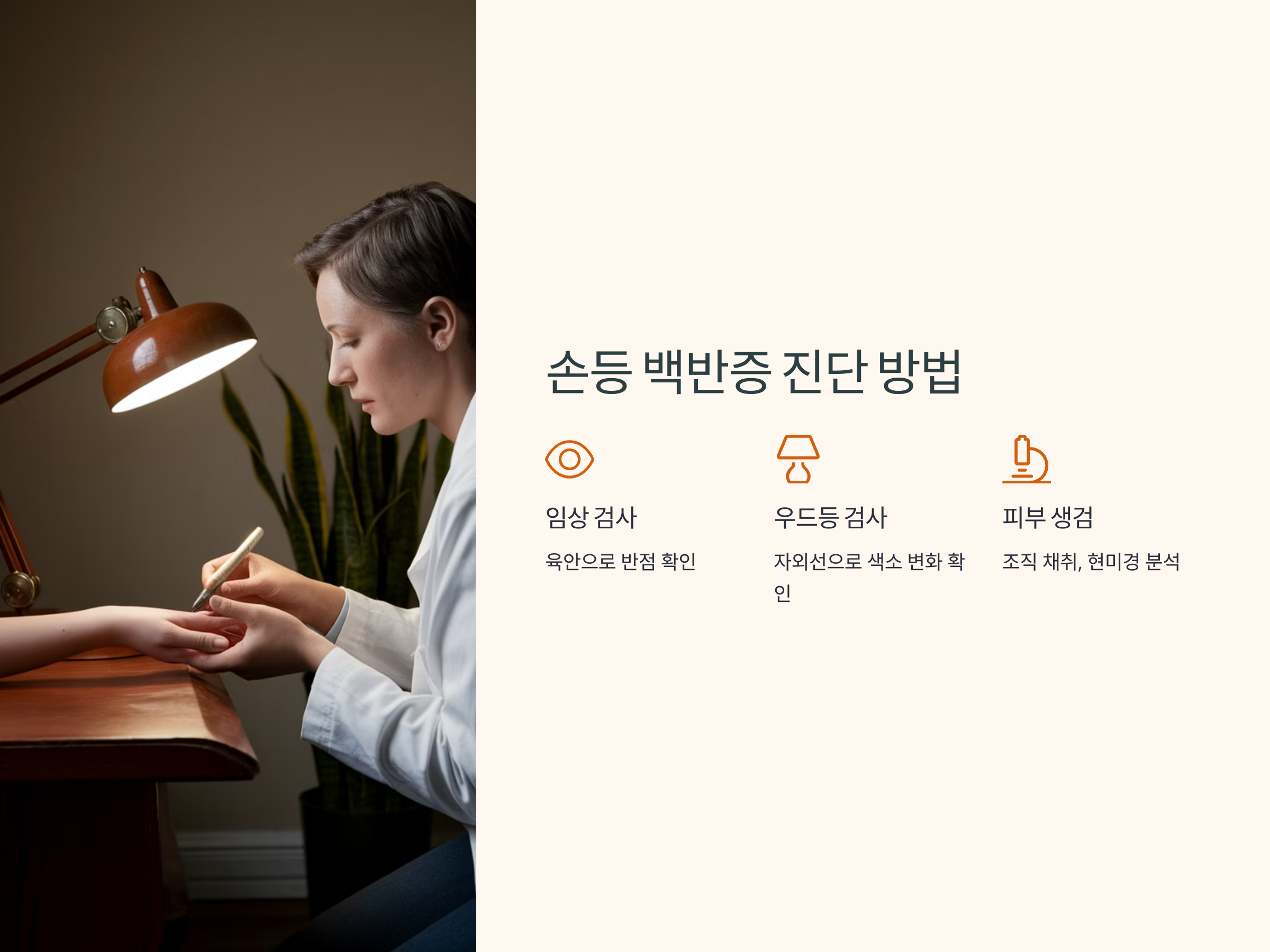 손등에 백반증이 의심될 경우, 다음과 같은 방법으로 진단할 수 있습니다: