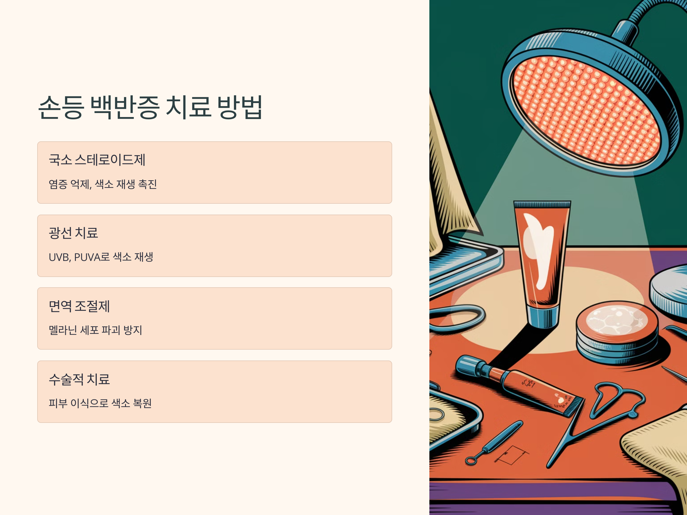 손등에 나타나는 백반증의 치료 방법은 다음과 같습니다: