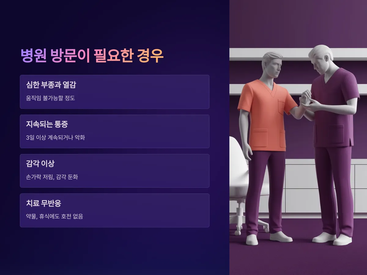 - 통증이 3일 이상 계속되거나 점점 심해진다