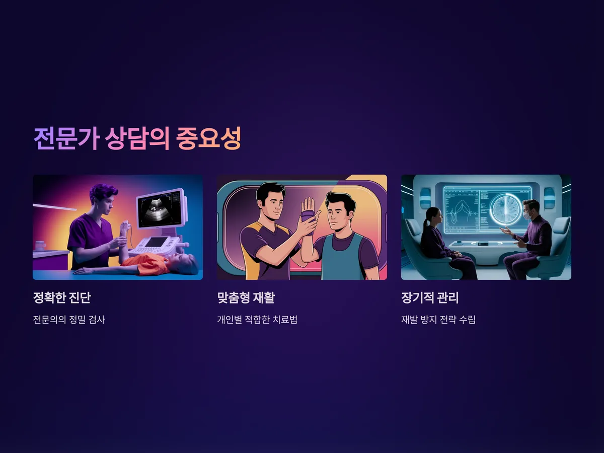 이런 경우에는 더 이상 자가치료에 의존하지 말고 정형외과나 재활의학과 전문의를 찾아야 합니다. 늦으면 손목 힘줄이 영구적으로 손상될 수 있고, 수술적 치료까지도 고려해야 할 수 있습니다. 정기적인 점검과 함께 회복 후에도 재활과 운동을 병행해 재발률을 낮추는 것이 매우 중요합니