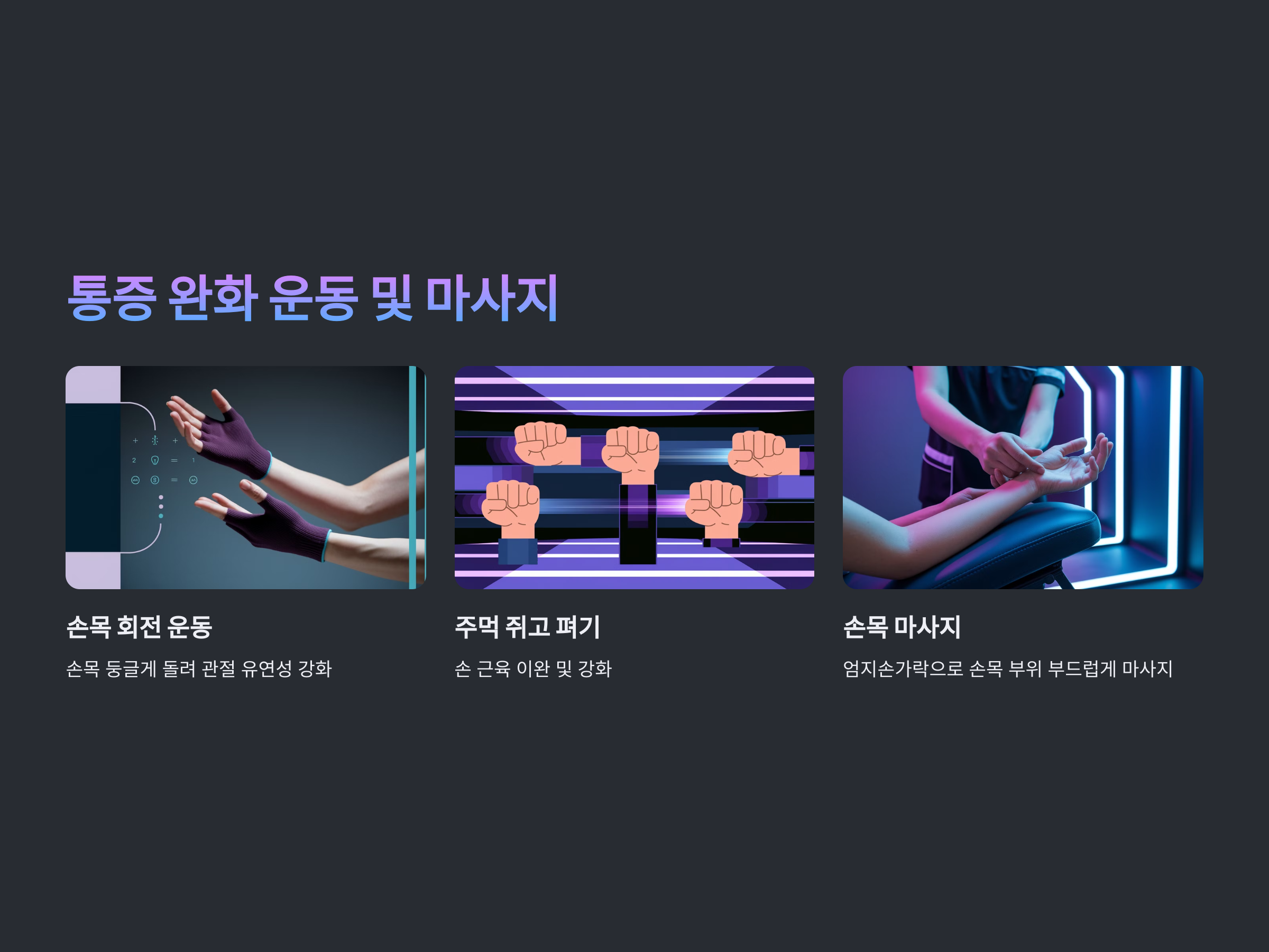 - 손목 보호대 착용: 장시간 손목을 사용할 경우 보호대 활용