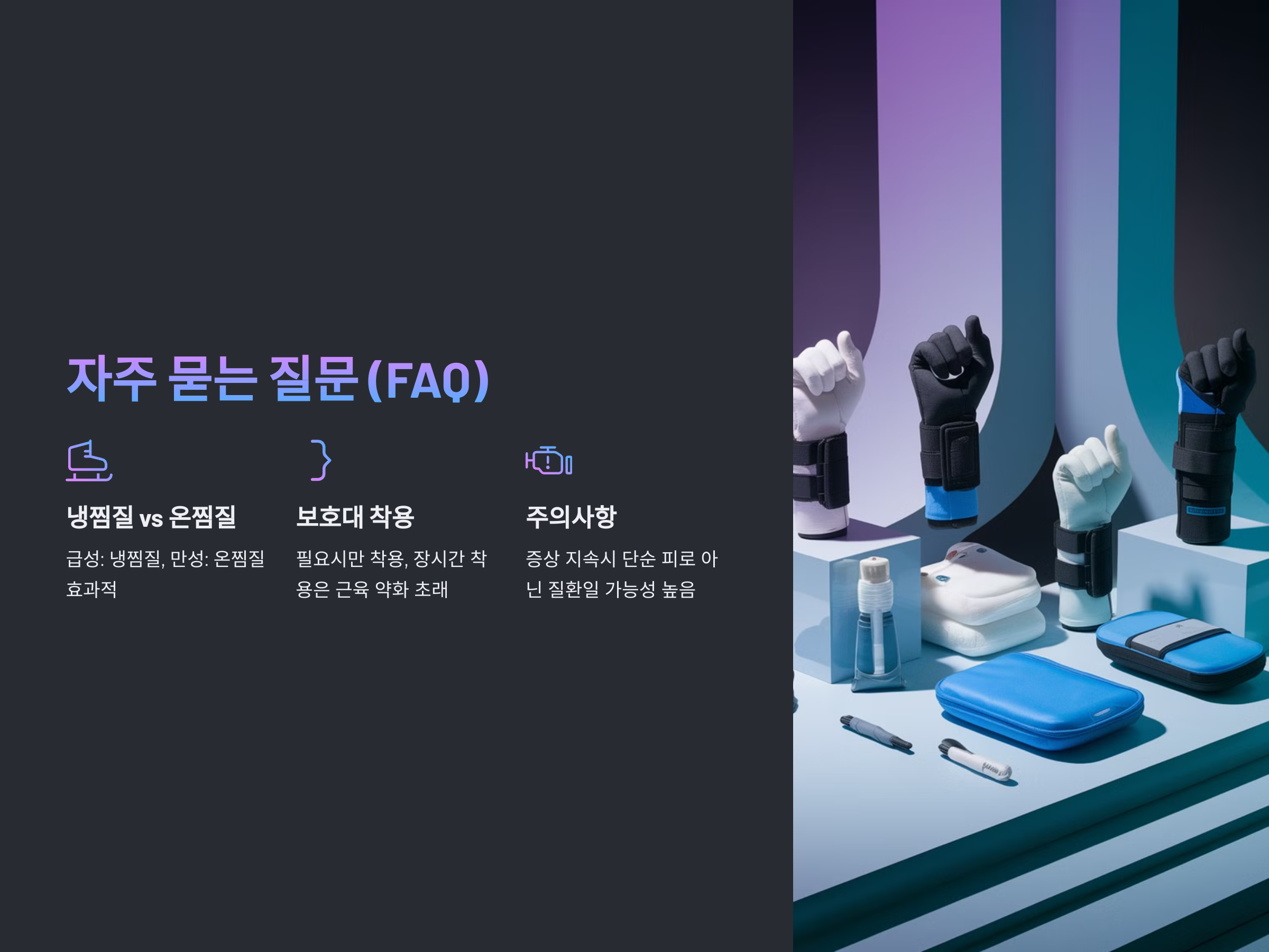 Q1. 손목 통증이 있을 때 냉찜질과 온찜질 중 무엇이 더 좋을까요?