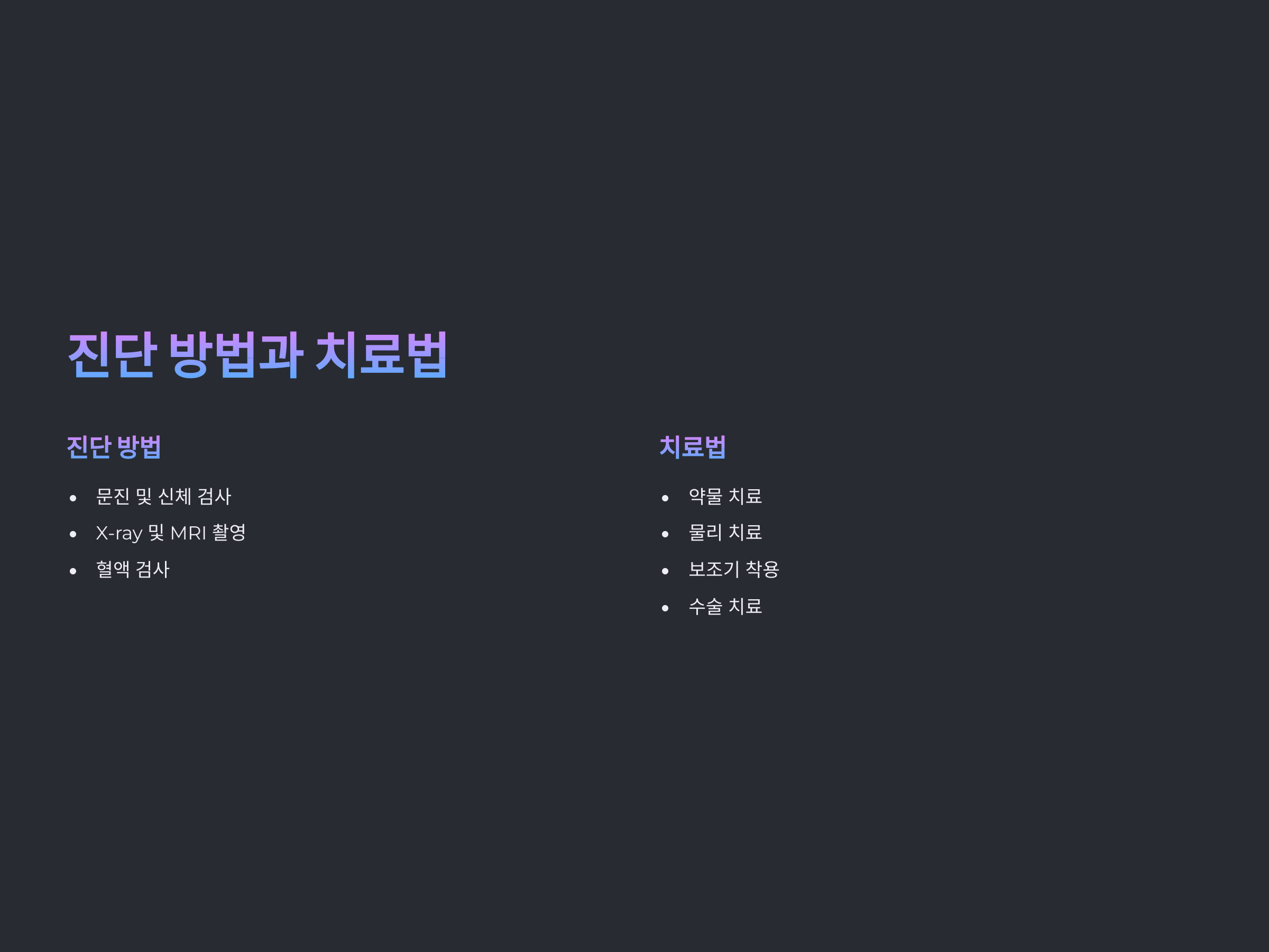 - 혈액 검사: 류마티스 관절염 여부 판단