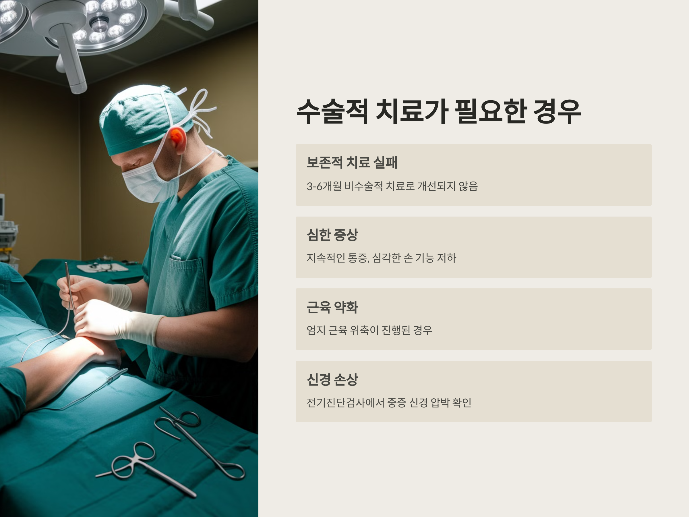 손목 터널 증후군 치료 손목 보호대 착용 및 수술
