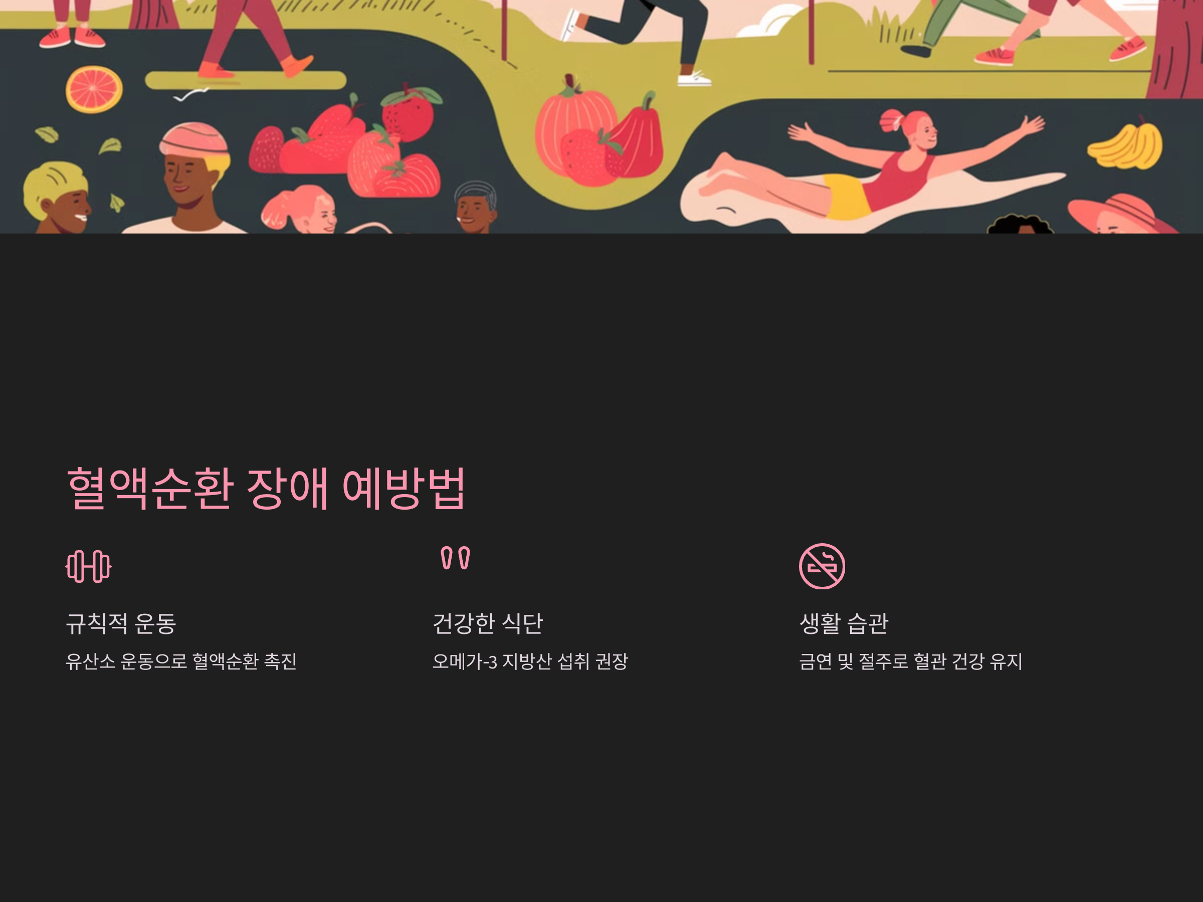 - 고혈압: 혈관에 과도한 압력이 가해지며 혈액순환 저하