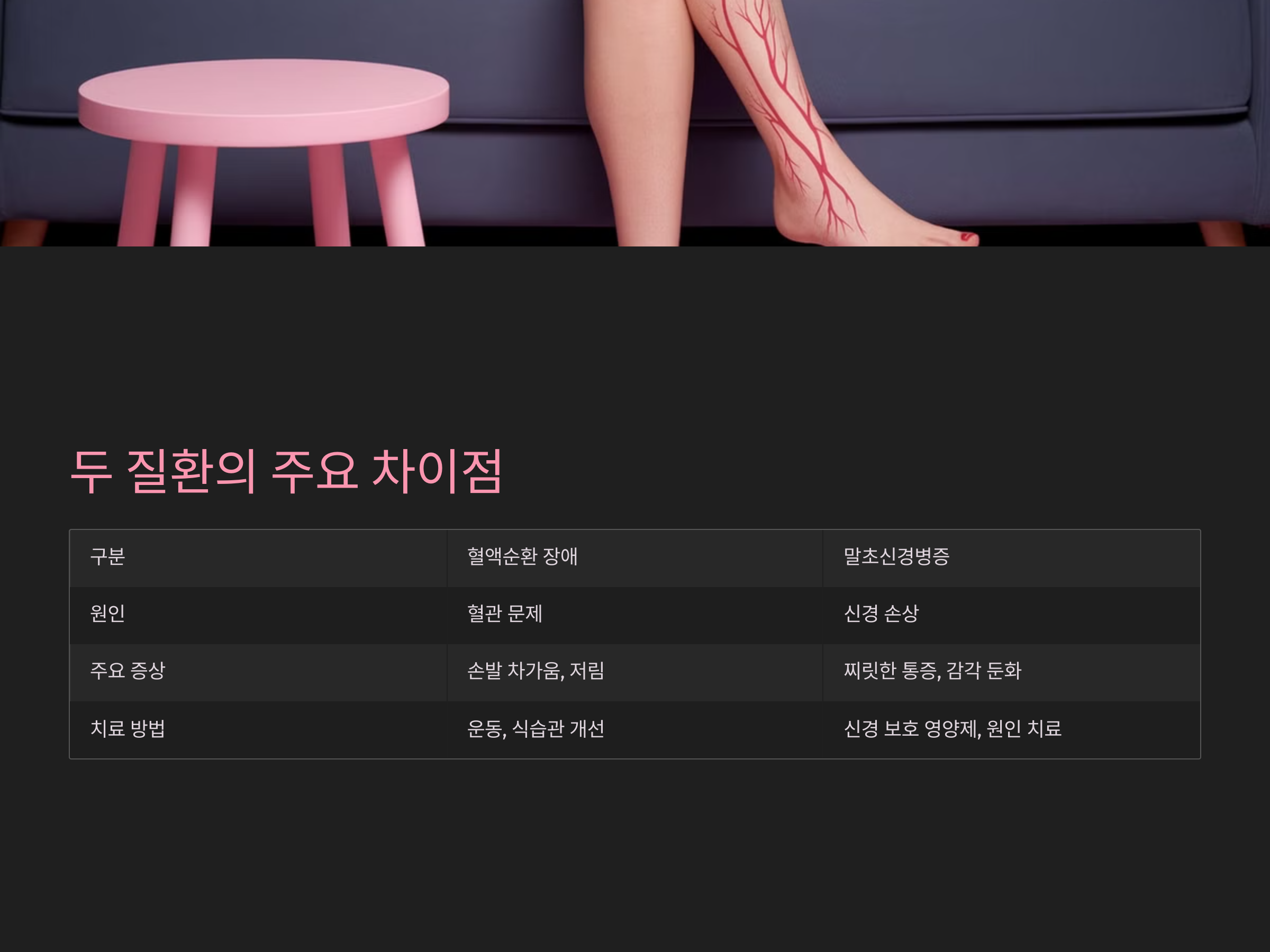 | 구분 | 혈액순환 장애 | 말초신경병증 |