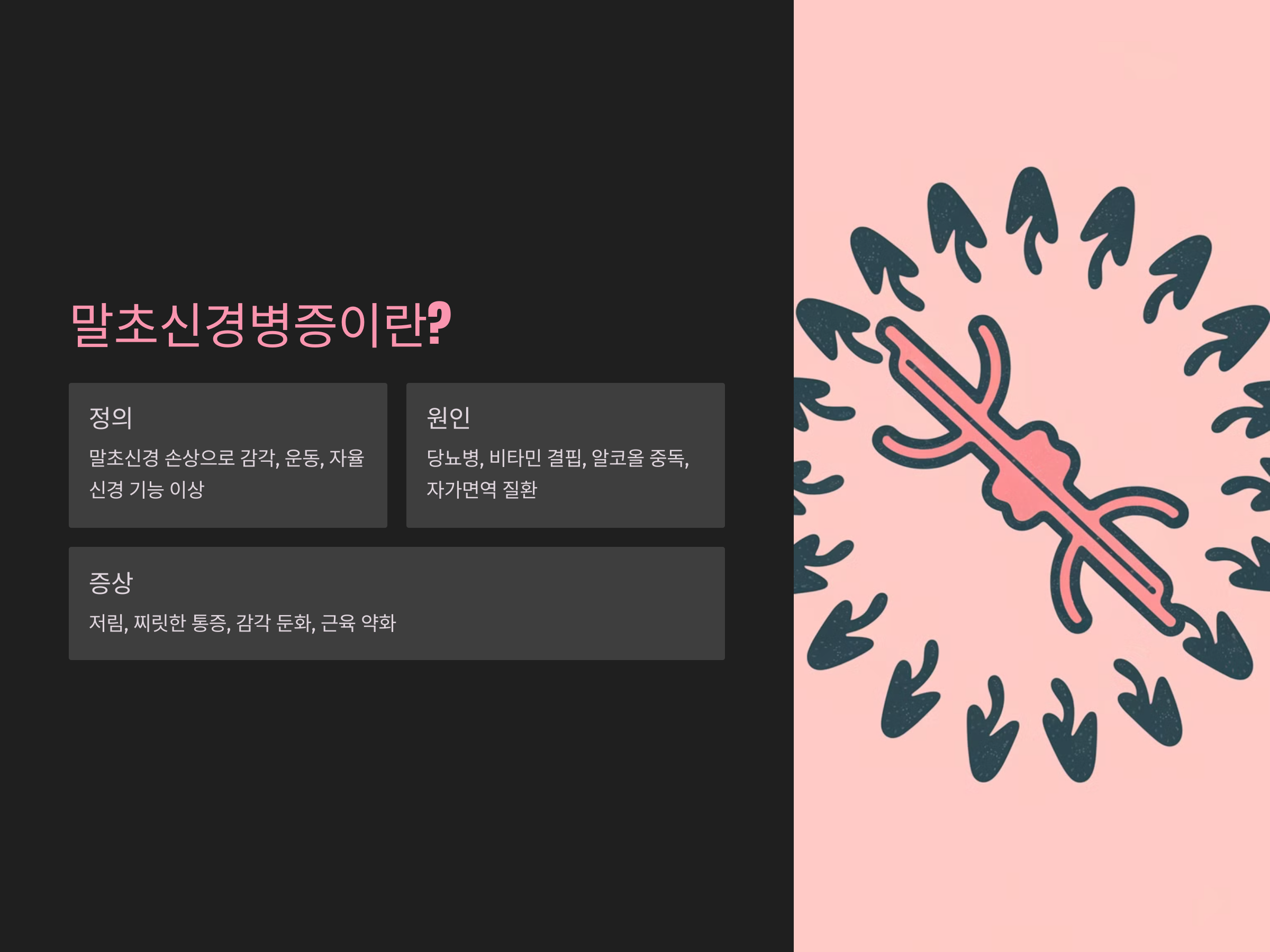 말초신경병증은 말초신경이 손상되면서 감각, 운동, 자율신경 기능에 이상이 생기는 질환입니다. 신경 자체가 손상되기 때문에 혈액순환 장애와는 다르게 신경 관련 증상이 뚜렷하게 나타납니다.