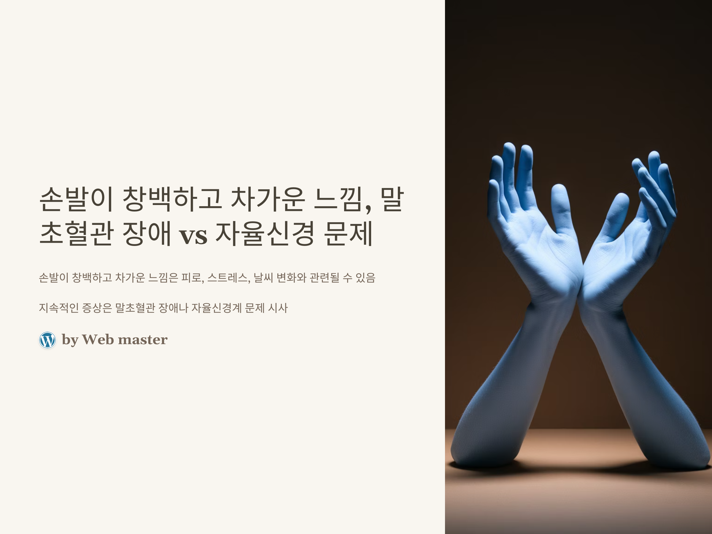 손발이 창백하고 차가운 느낌은 많은 사람들이 경험하는 증상 중 하나입니다. 이러한 증상은 피로, 스트레스 또는 날씨 변화와 관련이 있을 수 있지만, 때로는 더 심각한 문제를 시사할 수도 있습니다. 손발이 차갑고 창백한 상태가 지속된다면, 이는 말초혈관 장애 또는 자율신경계 문제와 관련이 있을 수 있습니다. 그렇다면 이 두 가지 원인에 대한 차이는 무엇일까요?
