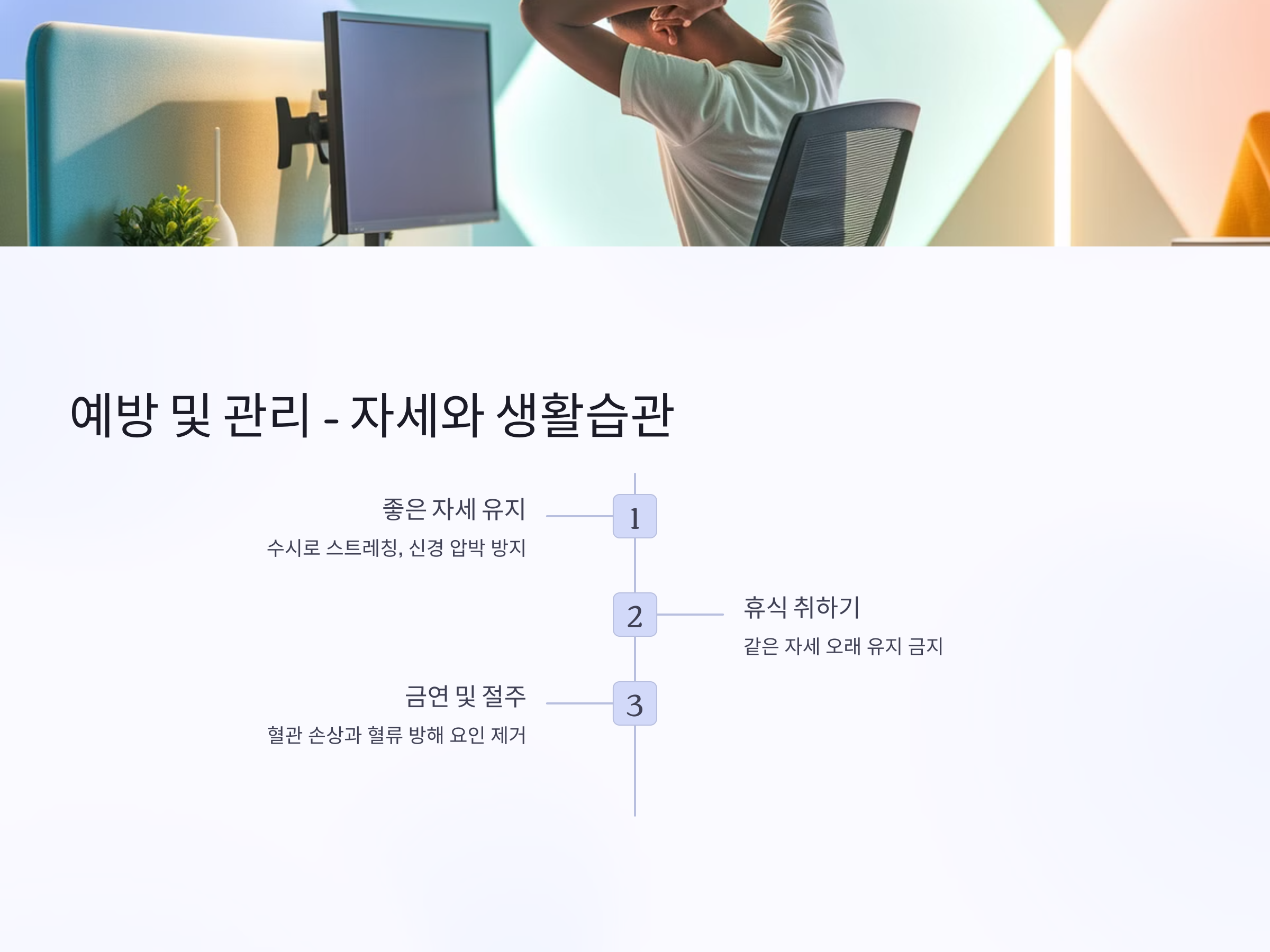 - 오랫동안 같은 자세를 유지할 때 저림이 심해짐