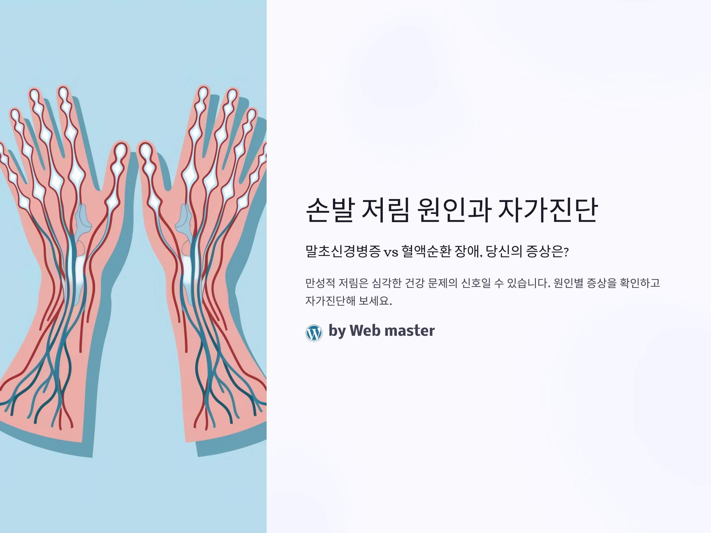 손발 저림은 단순한 피로 때문일 수도 있지만, 만성적으로 지속되거나 특정 증상과 함께 나타난다면 심각한 건강 문제의 신호일 수 있습니다. 특히 말초신경병증과 혈액순환 장애는 손발 저림의 대표적인 원인으로 꼽히며, 각각의 원인과 증상이 다르기 때문에 정확한 자가진단이 중요합니다. 이번 포스팅에서는 두 질환의 차이를 명확히 구분하고, 증상별 체크리스트를 통해 자신의 상태를 스스로 점검하는 방법을 알려드립니다.