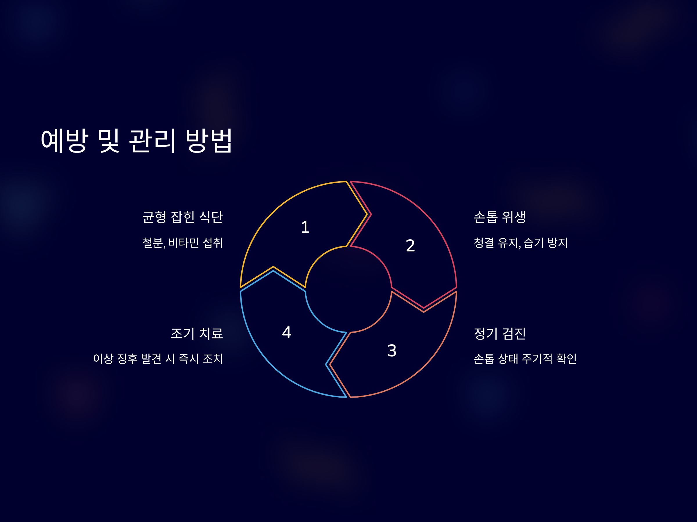 손톱의 색이나 두께 변화는 단순한 미용적 문제로 여길 수 있지만, 이는 건강에 중요한 신호일 수 있습니다. 빈혈이나 손발톱 무좀이 원인이라면, 각각의 원인에 맞는 치료가 필요합니다. 빈혈은 철분 보충이나 비타민 B12 섭취로 해결할 수 있으며, 손발톱 무좀은 항진균제를 사용한 치료가 필요합니다.