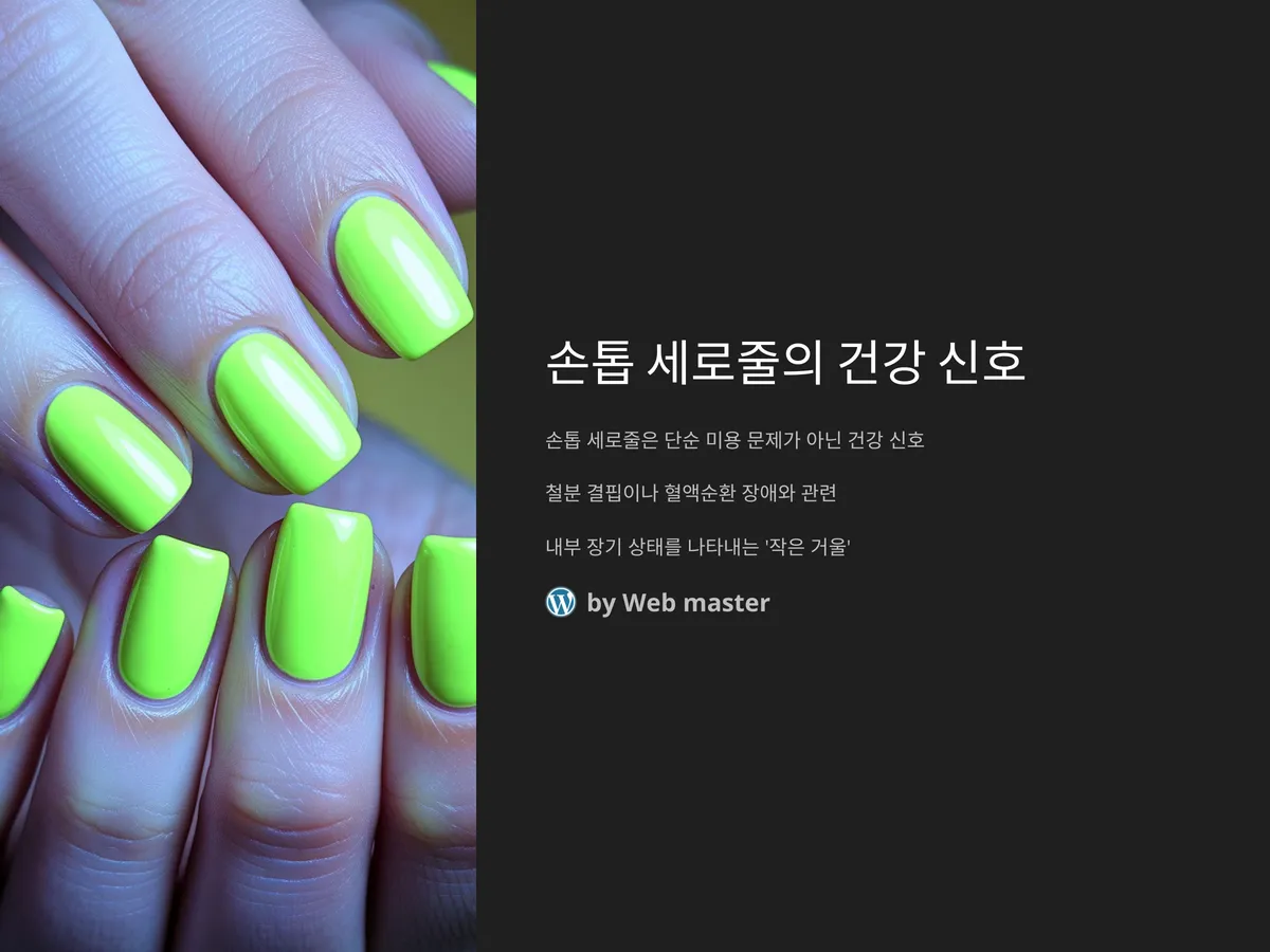 손톱에 갑자기 생겨난 세로줄, 그리고 깨지거나 갈라지는 증상은 단순한 미용 문제가 아닐 수 있습니다. 최근 건강 커뮤니티와 피부과 전문의 사이에서는 이러한 손톱의 변화가 철분 결핍 또는 혈액순환 장애와 밀접한 관련이 있다는 사실이 알려지며 큰 주목을 받고 있습니다. 특히 2025년 봄, 철분 섭취 권장량 증가 및 고령화에 따른 혈관 건강 이슈가 사회적 이슈로 대두되며 손톱 건강이 조기 진단 지표로 활용되고 있습니다.