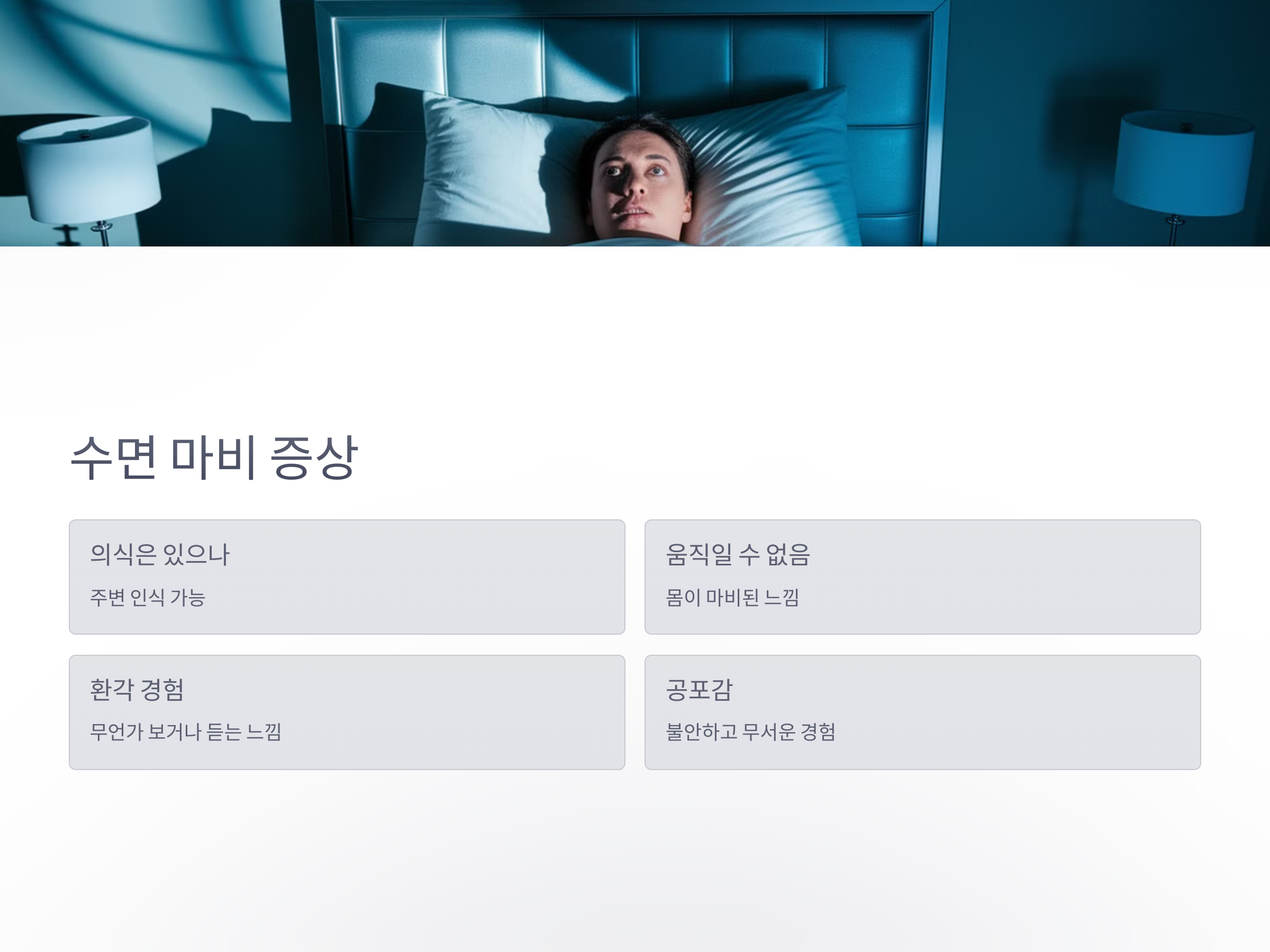 자세히 알아보기 수면 마비 예방 가이드 전문가의 상담 받기 수면 리듬 회복법 수면 장애 진단 받기