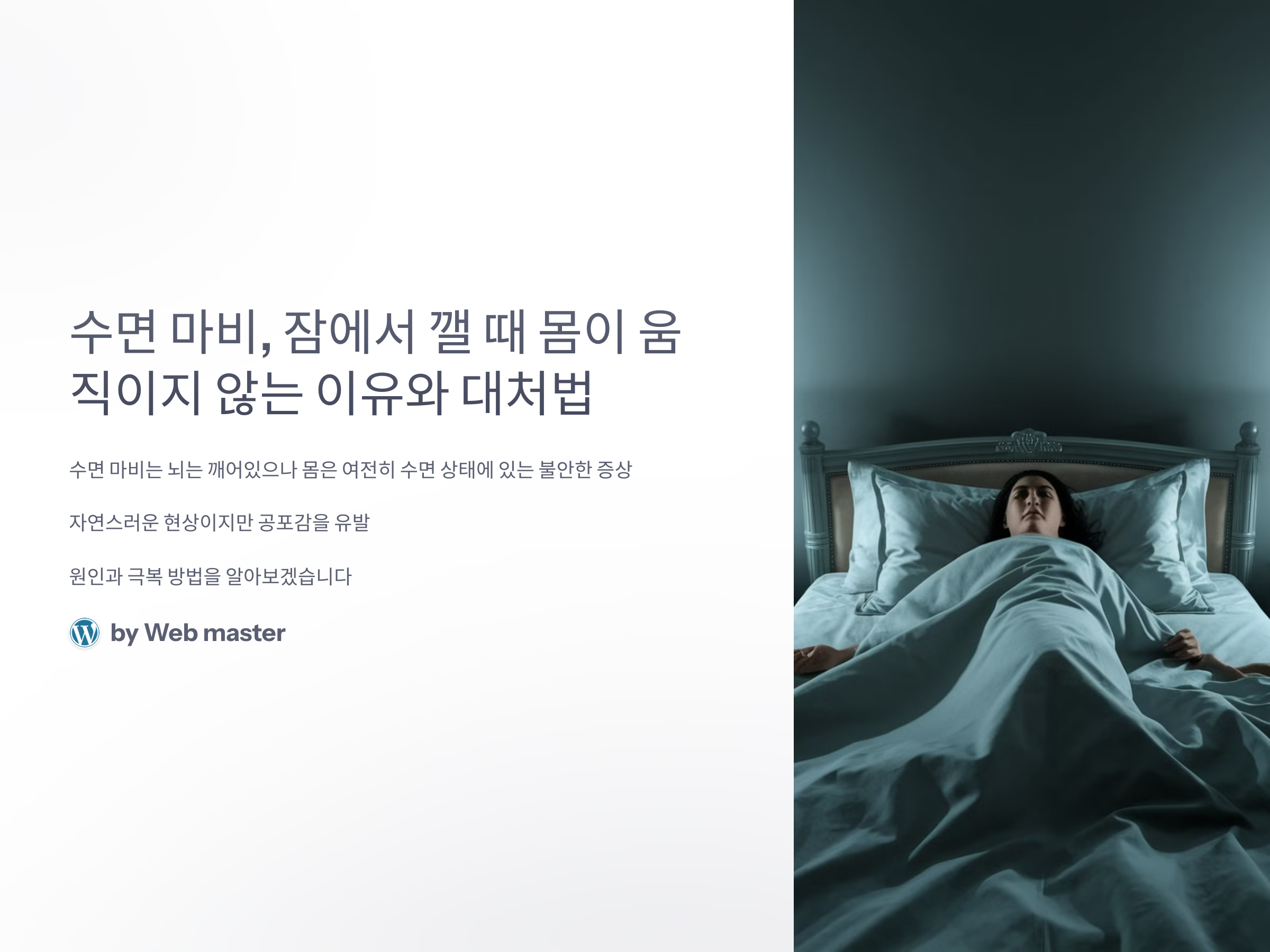 수면 마비는 많은 사람들이 경험하는 불안한 증상입니다. 잠에서 깼을 때 몸이 움직이지 않고, 주변에서 소리가 들려도 자신은 아무것도 할 수 없는 상태에 처하는 것 같은 느낌이 드는 경우가 있습니다. 이런 상태는 사실 뇌와 신체가 잠에서 완전히 깨어나지 않아서 발생하는 자연스러운 현상일 수 있지만, 그 불안감은 상당히 크고 무서운 경험으로 다가올 수 있습니다. 오늘은 수면 마비의 원인과 그것을 극복하는 방법에 대해 알아보겠습니다.