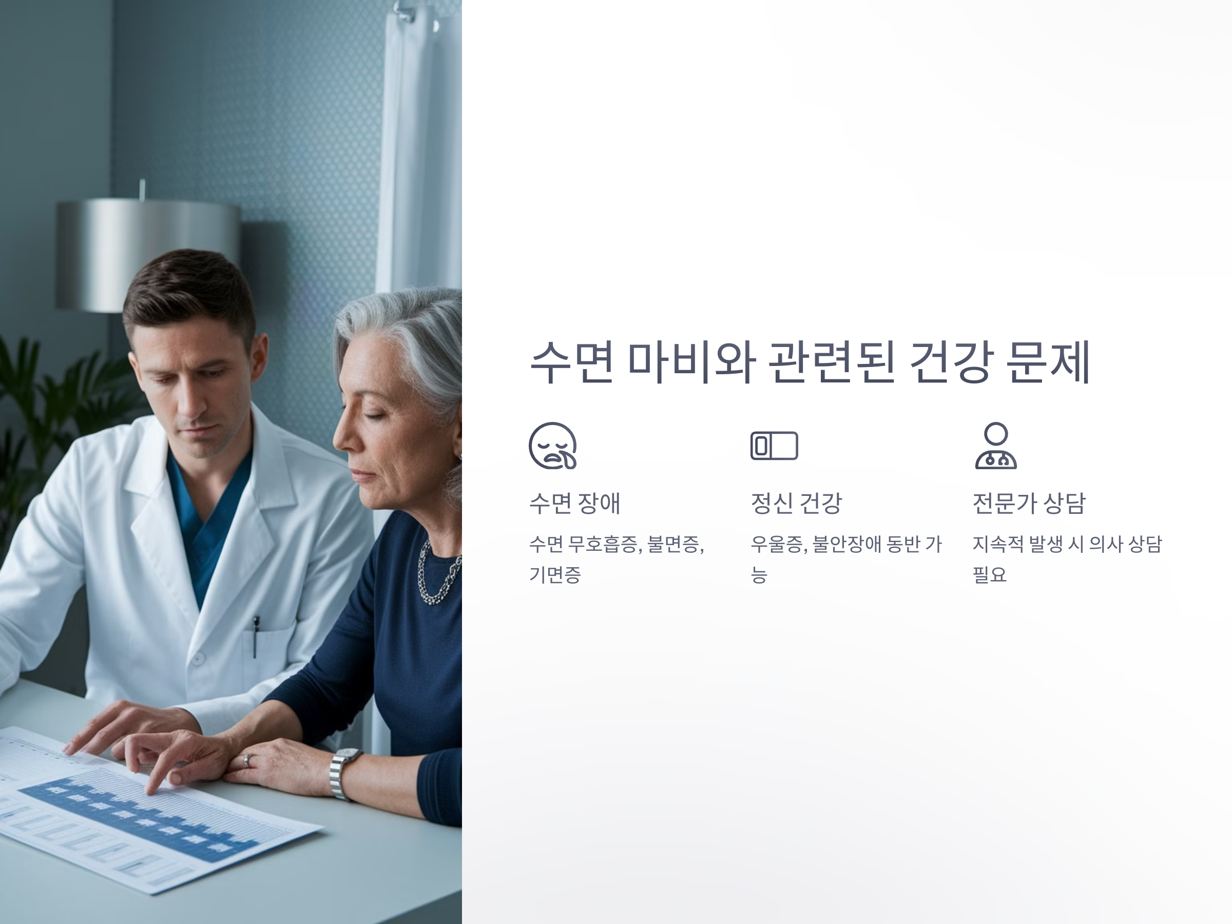 수면 마비가 지속적으로 발생하는 경우, 잠재적인 건강 문제의 징후일 수 있습니다. 예를 들어, 수면 무호흡증이나 불면증, 기면증과 같은 수면 장애가 있을 수 있습니다. 이 경우에는 단순한 수면 마비가 아닌 다른 원인으로 인한 문제일 수 있으므로, 전문가의 상담을 받는 것이 중요합니다. 수면 장애를 해결하면 수면 마비의 빈도를 줄일 수 있습니다.