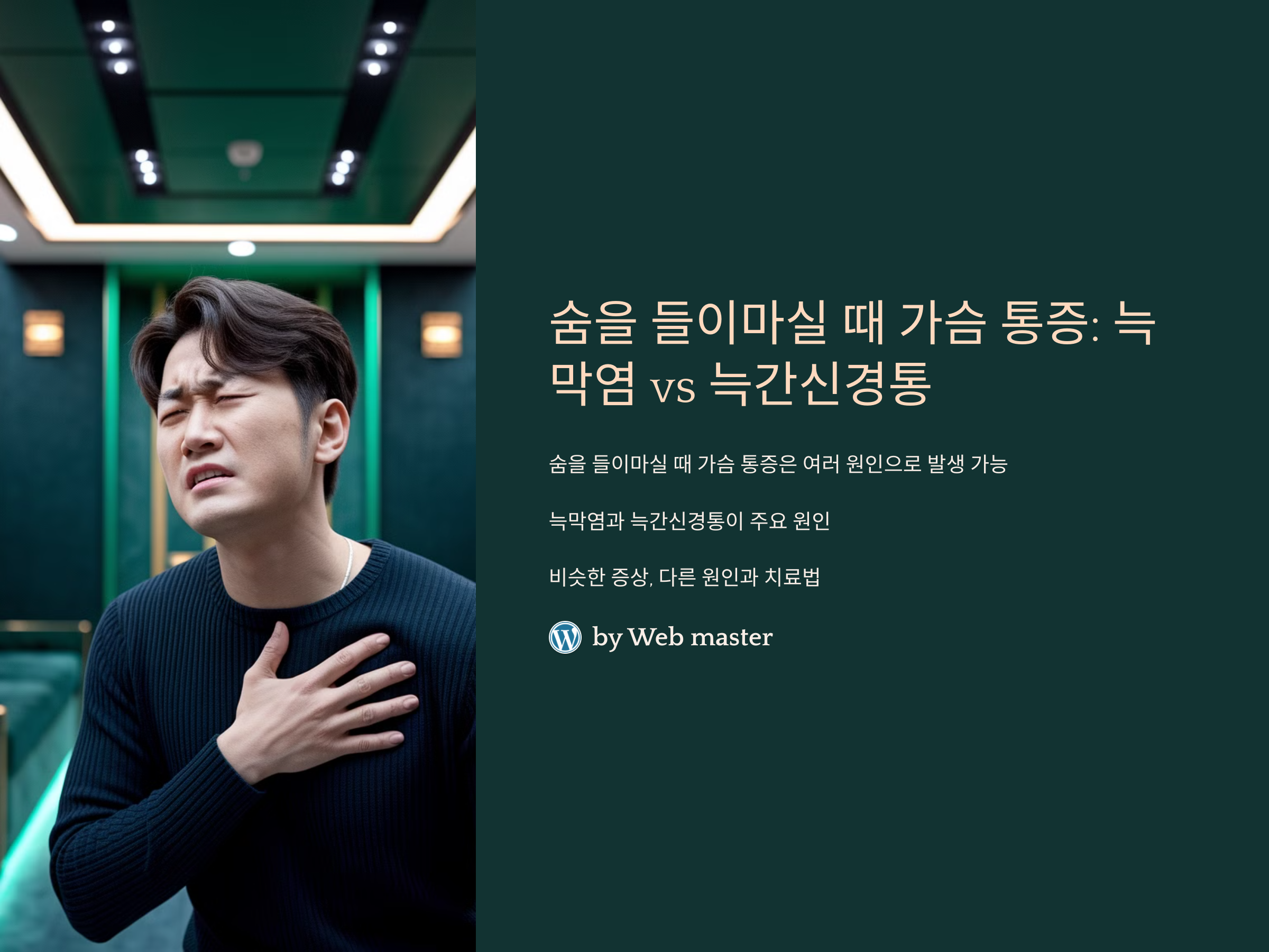 숨을 들이마실 때 가슴 통증을 경험할 경우, 어떤 질환이 원인일 수 있는지에 대한 궁금증을 풀어보겠습니다. 이 글을 통해 각 질환의 증상, 원인, 치료 방법 등을 구체적으로 설명드리겠습니다.
