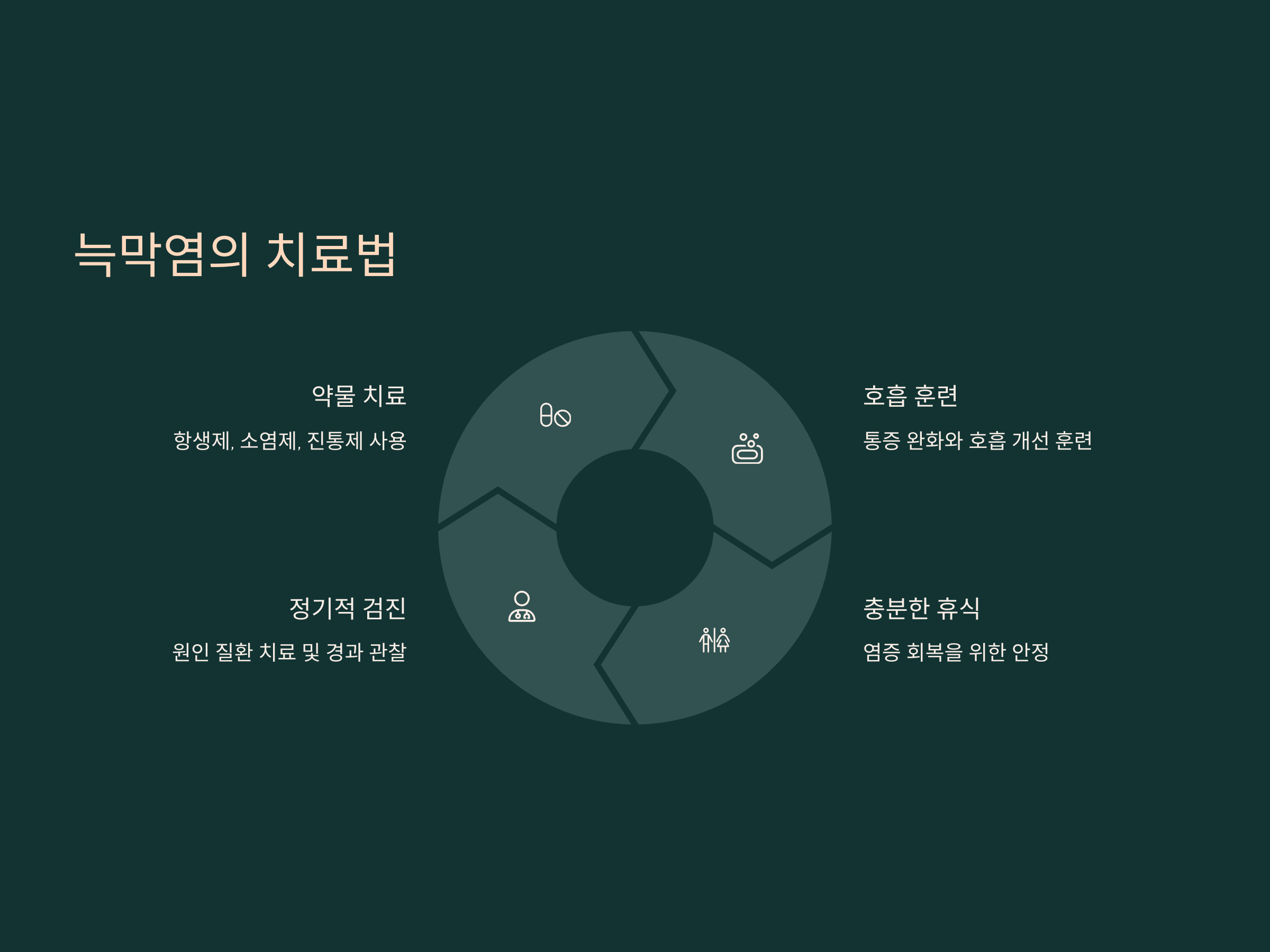 늑막염의 치료는 원인에 따라 달라지며, 염증을 줄이고 증상을 완화하는 것이 목표입니다. 치료 방법으로는 약물 치료와 물리 치료가 있습니다.