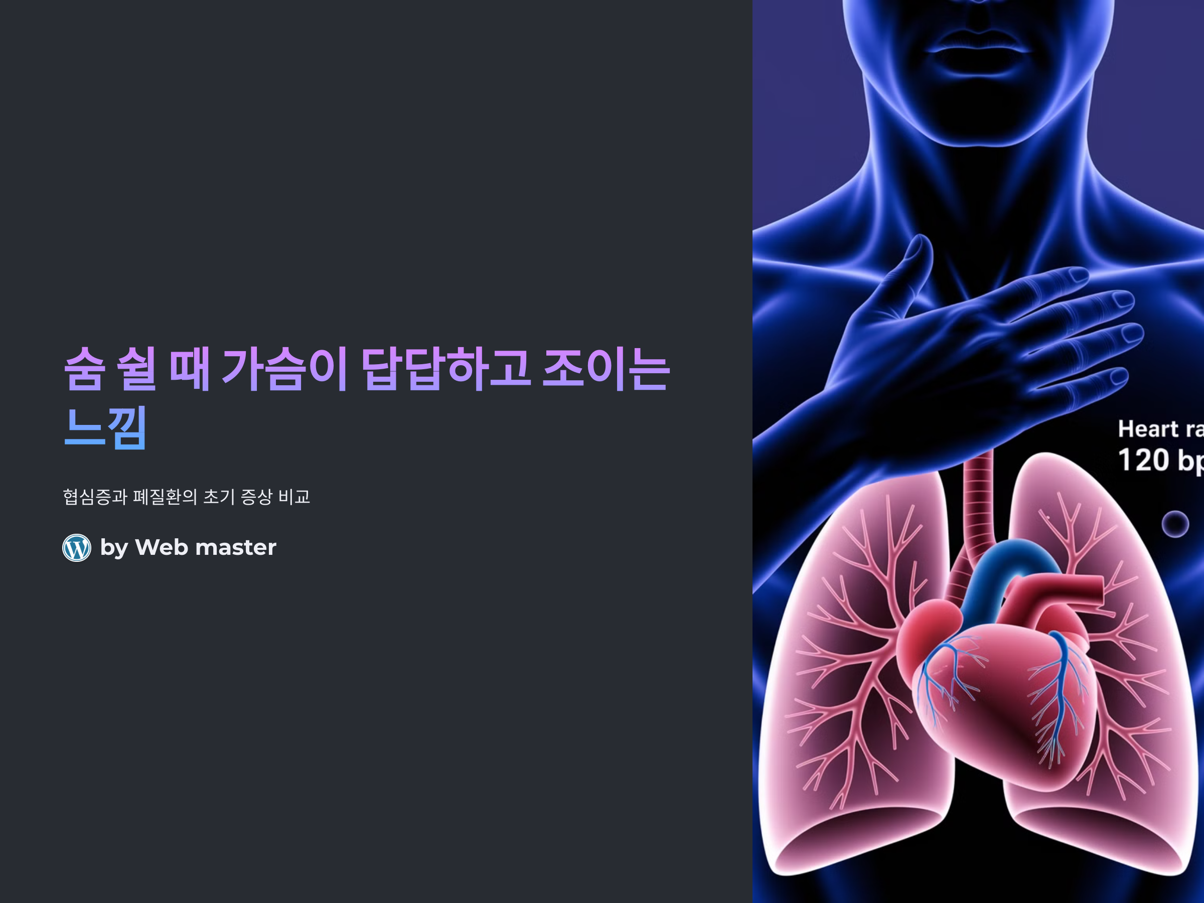 숨을 쉴 때 가슴이 답답하고 조이는 느낌이 처음 나타나면 많은 사람들이 두려움을 느낄 수 있습니다. 특히, 이러한 증상은 심각한 질환이 아닌지 걱정하게 되죠. 하지만 협심증과 폐질환은 각각의 증상에서 차이를 보입니다. 이를 구분하는 것이 중요한 이유는 빠른 진단과 적절한 치료를 통해 합병증을 예방할 수 있기 때문입니다.