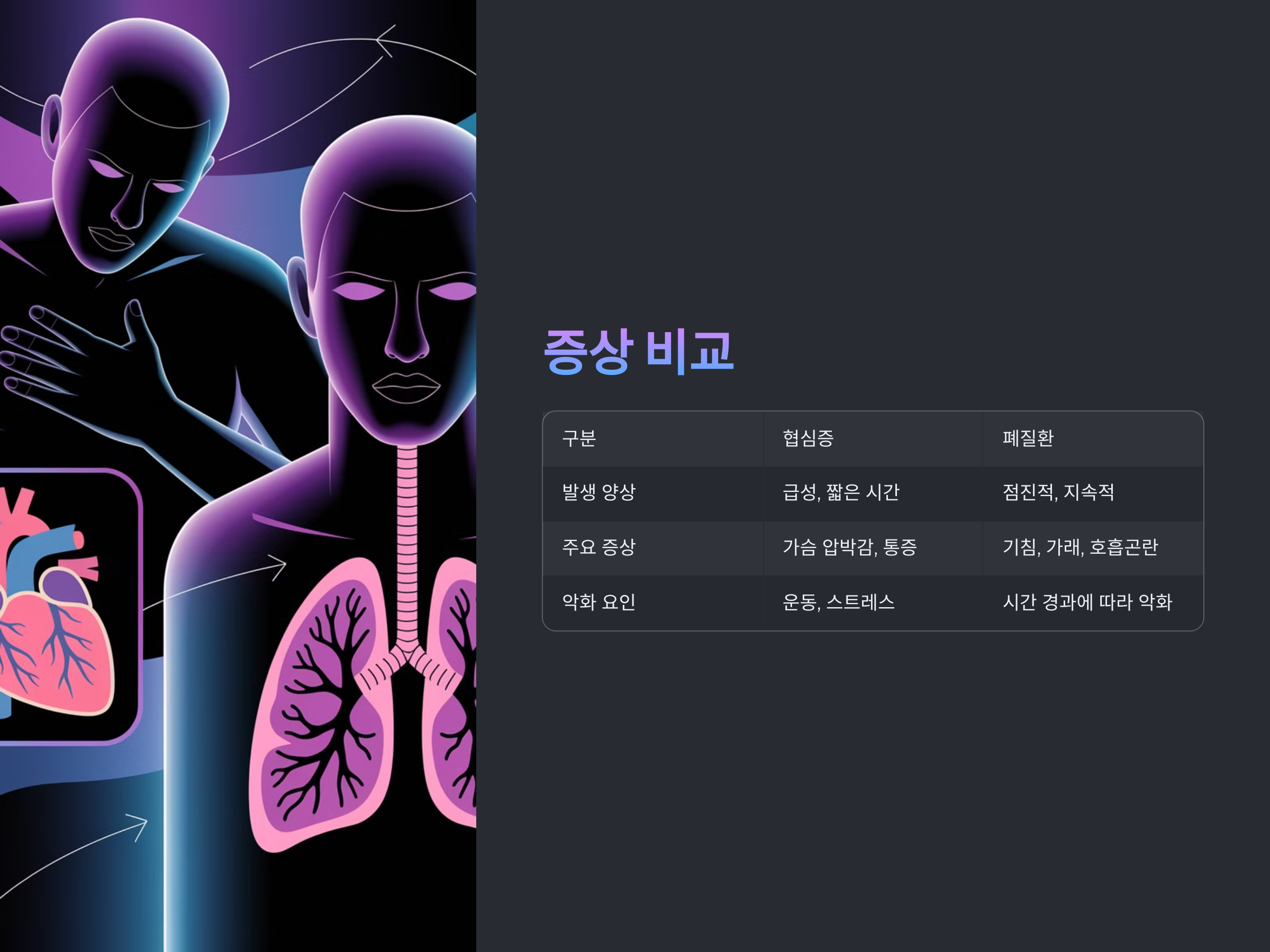 협심증과 폐질환의 증상 비교