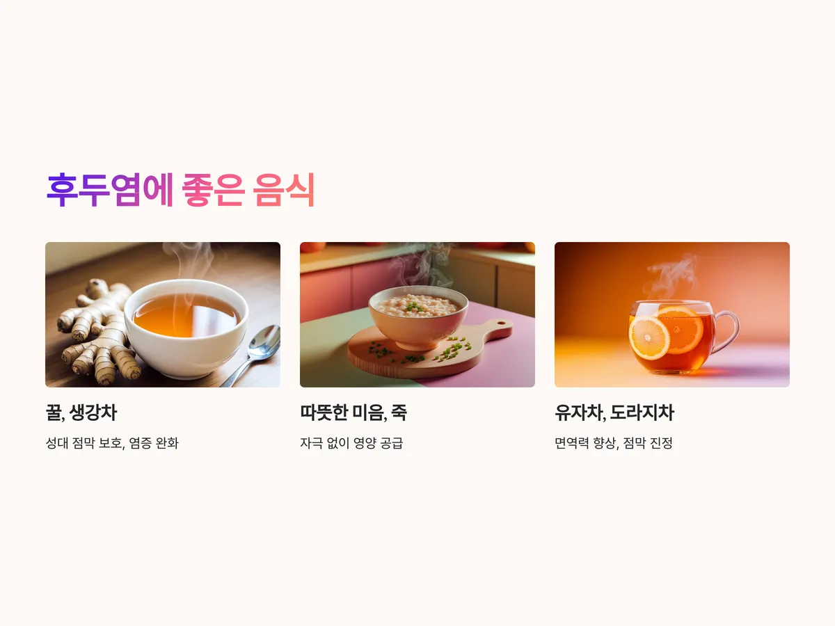 이러한 음식 선택은 회복 기간을 단축시키고, 증상의 악화를 막는 데 효과적입니다. 특히 '도라지+꿀' 조합은 후두염 민간요법으로 자주 사용됩니다.