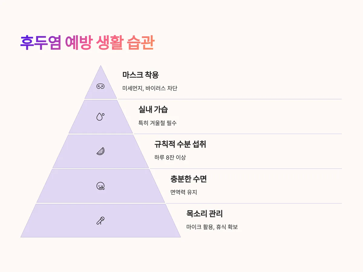 후두염은 예방이 가능하며, 건강한 목소리를 유지하기 위해 일상 속에서 실천할 수 있는 습관들이 많습니다. 특히 반복적인 후두염에 시달리는 경우, 생활 습관의 개선이 반드시 필요합니다.