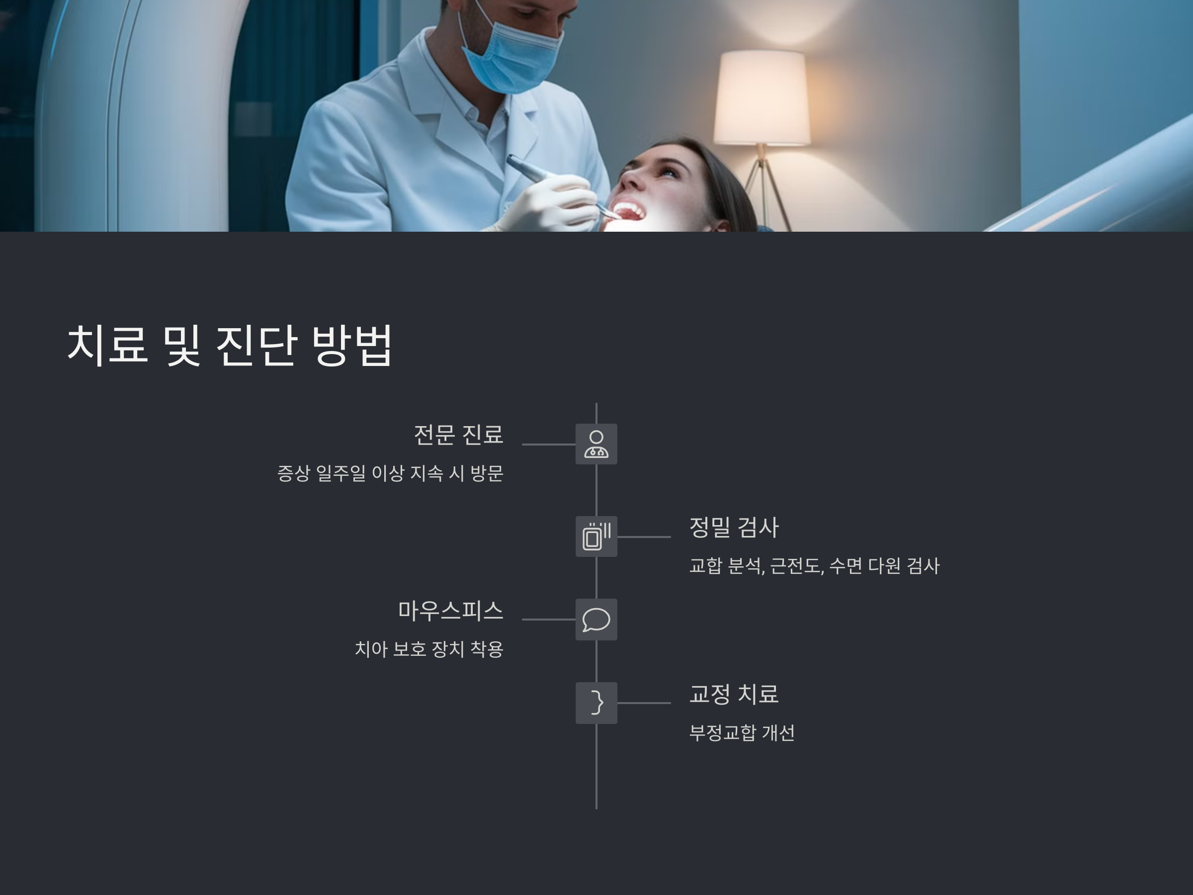 부정교합은 타고나는 경우도 있지만, 발치 후 방치, 교정 실패, 턱 성장의 비대칭 등 다양한 후천적 요인에 의해 발생할 수 있습니다. 정밀한 교합 검사와 함께 교정치료나 보철 치료가 병행되면 이갈이 증상을 현저히 줄일 수 있습니다. 최근에는 디지털 스캔과 AI 분석을 통한 정밀 교합 진단 시스템이 활발히 도입되고 있어 진단의 정확성과 치료의 효율성이 크게 향상되고 있습니다.