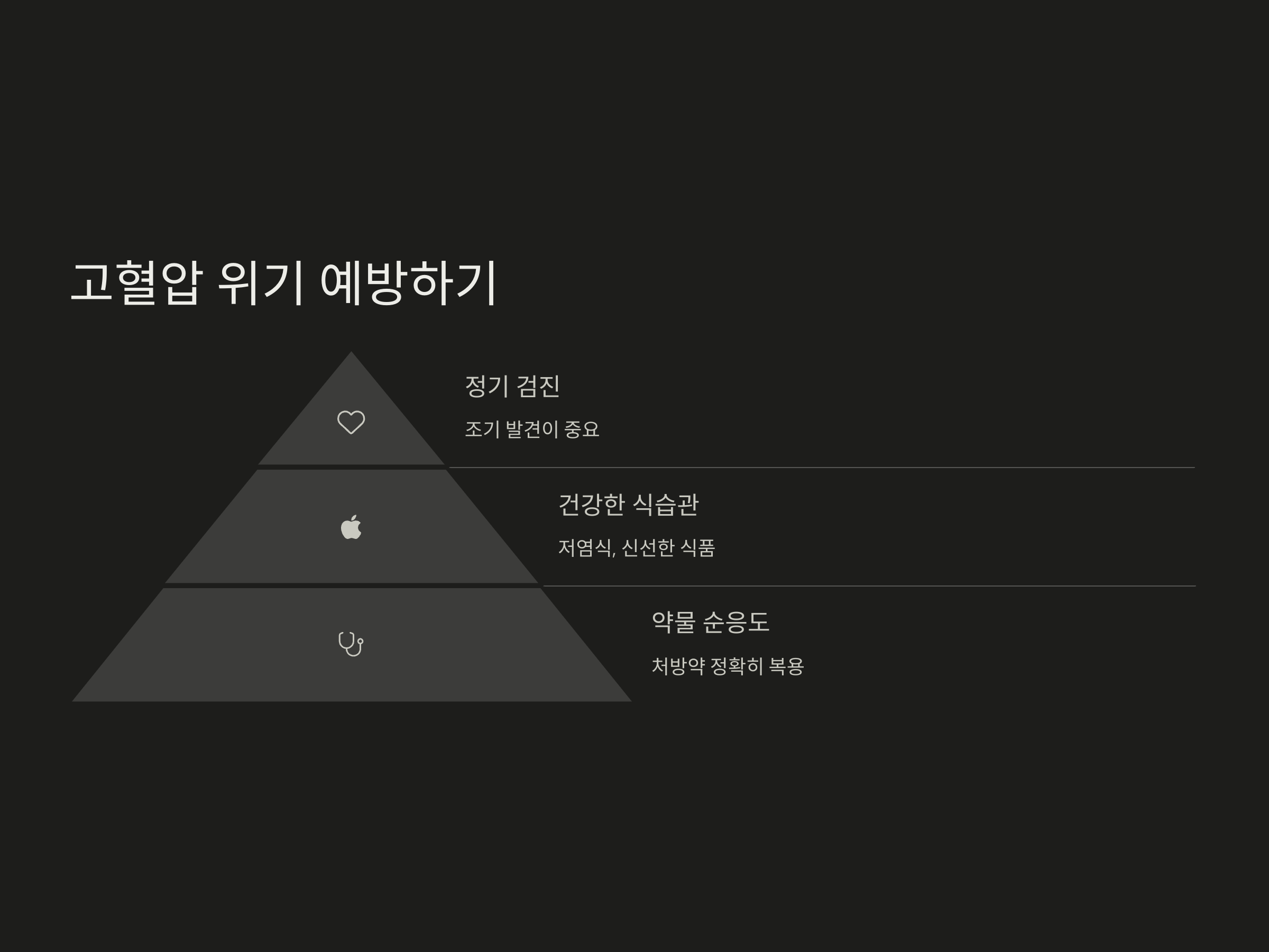 고혈압 위기를 예방하기 위해서는 평소의 생활습관 개선이 무엇보다 중요합니다. 첫째, 나트륨 섭취를 줄이고 가공식품, 국물 음식 위주의 식습관을 개선해야 합니다. 둘째, 규칙적인 운동과 스트레스 관리가 필수이며, 명상이나 걷기 등 가벼운 활동부터 시작하는 것이 좋습니다.