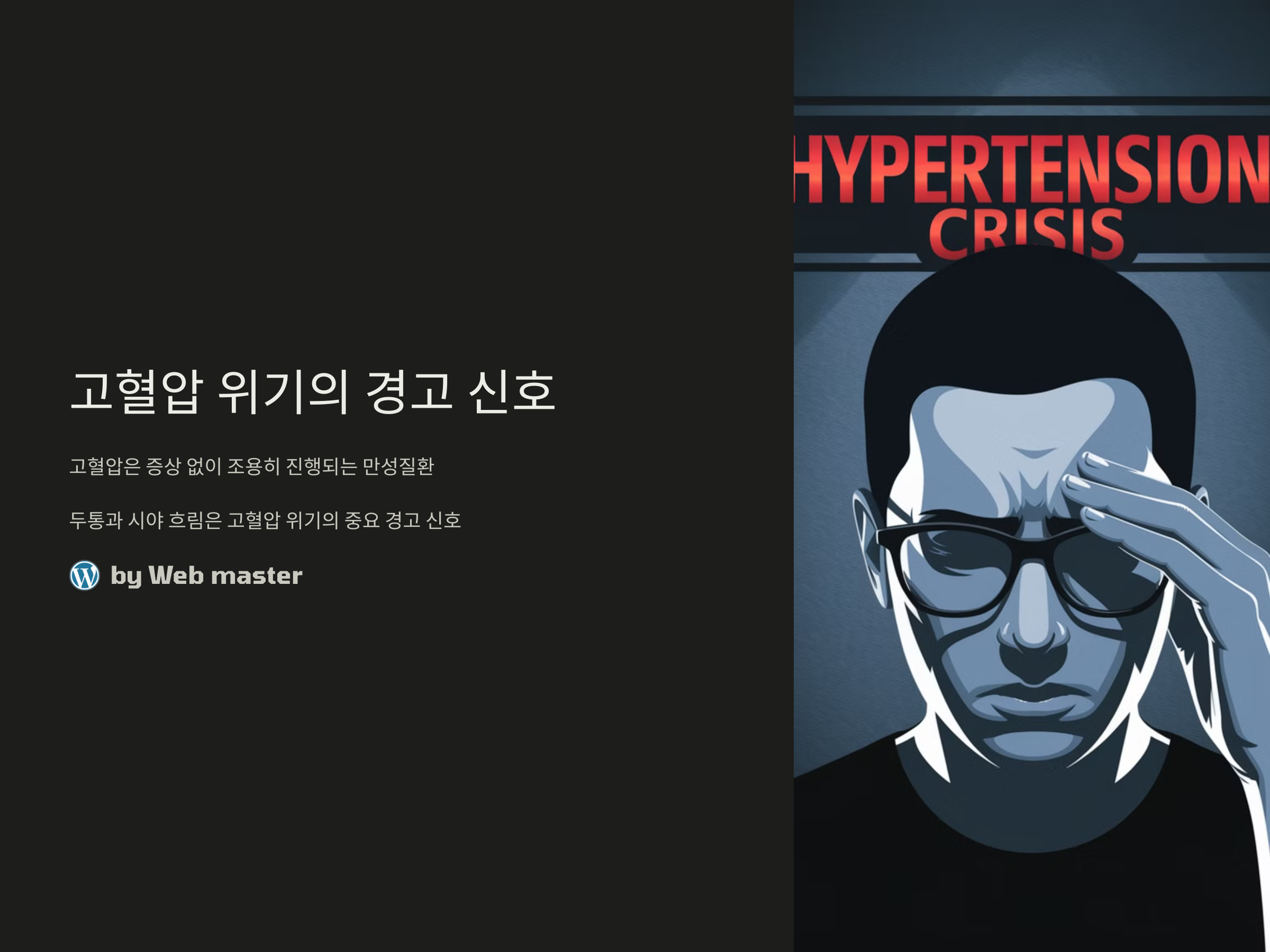 고혈압은 증상이 없어도 조용히 진행되는 대표적인 만성질환입니다. 하지만 어느 날 갑자기 머리가 깨질 듯 아프고, 눈앞이 뿌옇게 흐려지는 증상을 느꼈다면 단순한 피로나 안압 문제로 넘기지 말고 '고혈압 위기'를 의심해봐야 합니다. 최근 대한고혈압학회에 따르면, 고혈압 환자 중 상당수가 두통과 시야 흐림 증상이 반복적으로 나타난 후에야 병원을 찾는 경우가 많다고 합니다. 이런 증상은 뇌출혈이나 심혈관계 질환으로 이어질 수 있는 고위험 경고 신호일 수 있으므로 즉각적인 대응이 필요합니다.