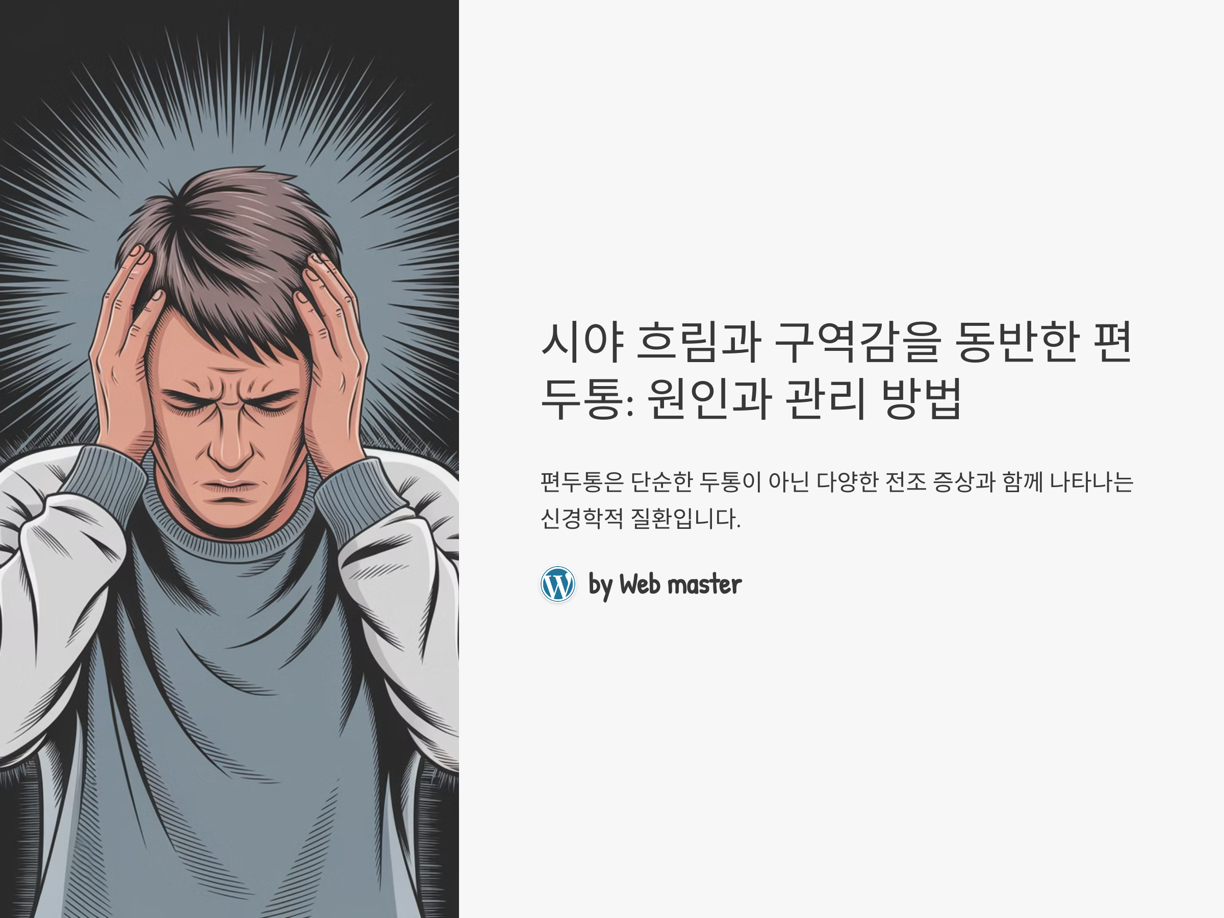 시야 흐림과 구역감을 동반한 편두통은 일상생활에 큰 지장을 주는 증상입니다. 정확한 진단과 적절한 관리로 증상을 완화하고 예방할 수 있으므로, 증상이 지속되거나 심해질 경우 전문 의료 기관을 방문하여 상담받는 것이 중요합니다.