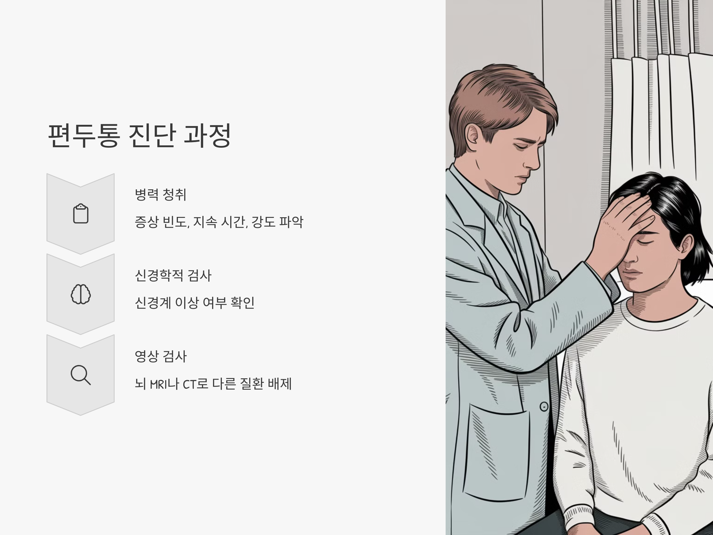 편두통의 전조 증상으로 시야 흐림과 구역감이 나타날 경우, 정확한 진단을 위해 전문 의료 기관을 방문하는 것이 중요합니다. 진단 과정은 다음과 같습니다: