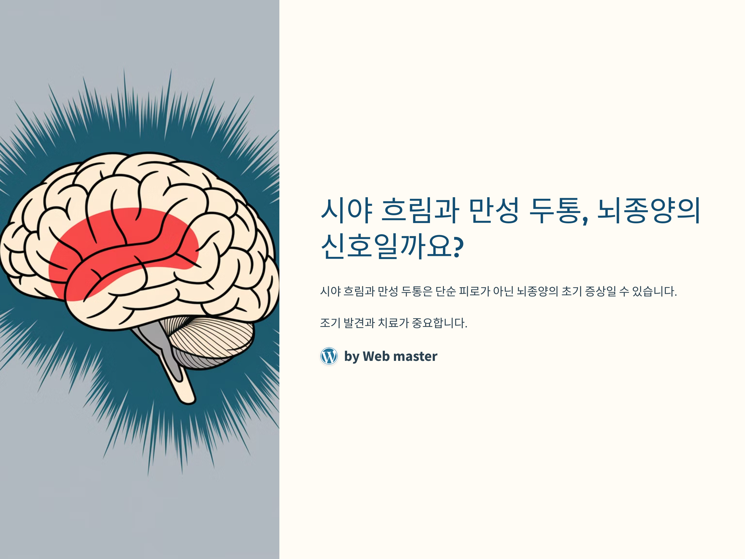 최근 들어 시야가 흐려지거나 만성적인 두통에 시달리고 계신가요? 이러한 증상은 단순한 피로나 스트레스 때문일 수 있지만, 간과해서는 안 되는 중요한 신호일 수도 있습니다. 특히, 뇌종양의 초기 증상으로 나타날 수 있으므로 주의가 필요합니다. 이번 글에서는 시야 흐림과 만성 두통이 뇌종양과 어떤 관련이 있는지, 그리고 이러한 증상이 나타날 때 어떻게 대처해야 하는지에 대해 알아보겠습니다.