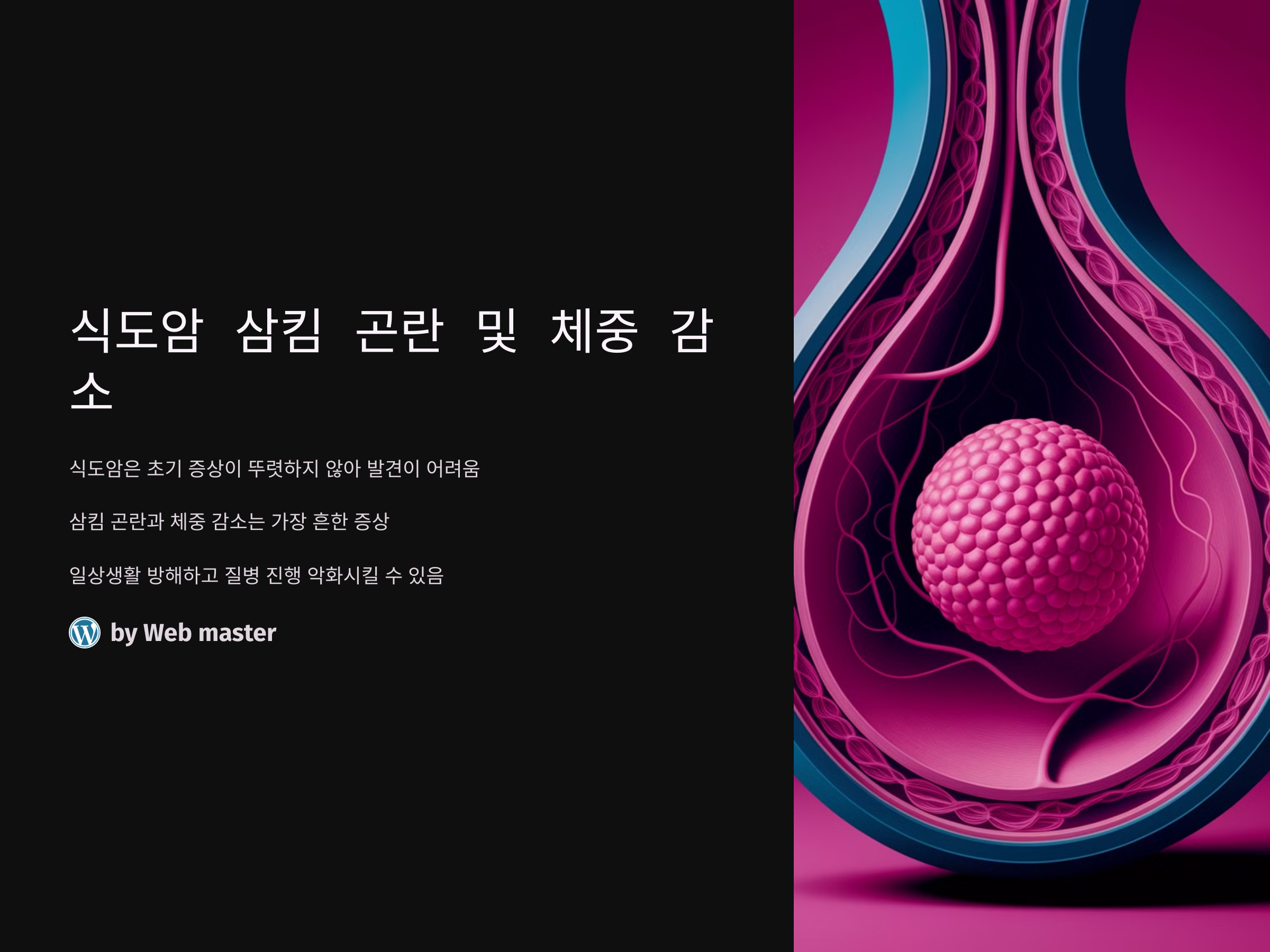 식도암은 초기 증상이 뚜렷하지 않아 많은 사람들이 병을 발견하기 어려운 질병입니다. 그 중에서도 삼킴 곤란(연하 곤란)과 체중 감소는 식도암 환자들에게 가장 흔하게 나타나는 증상입니다. 이러한 증상은 환자의 일상적인 생활을 방해하고, 질병의 진행을 더욱 악화시킬 수 있습니다. 오늘은 식도암의 주요 증상인 삼킴 곤란과 체중 감소에 대해 자세히 살펴보고, 이를 어떻게 관리하고 대응할 수 있는지에 대해 논의해 보겠습니다.
