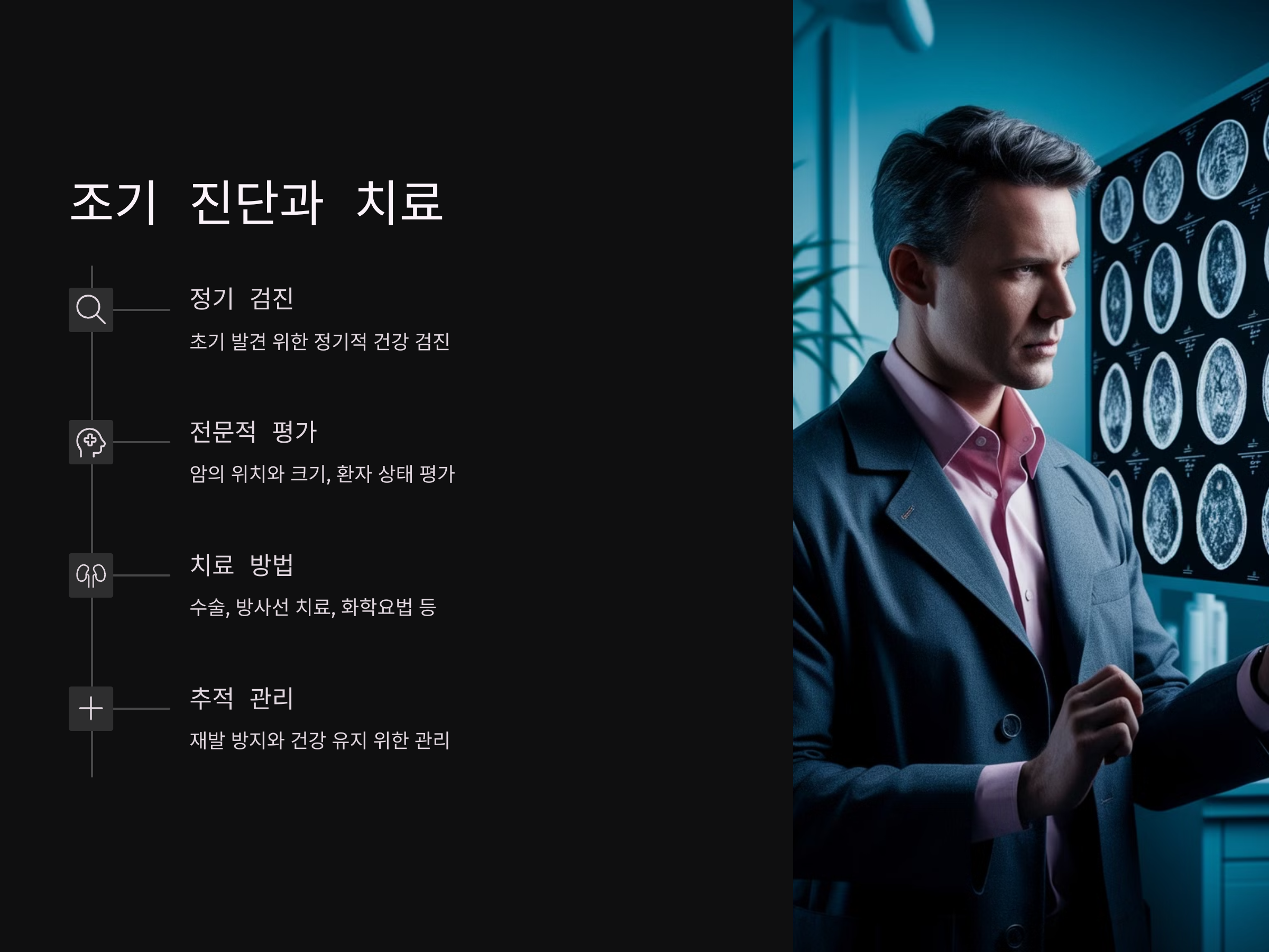 식도암은 조기에 발견하여 치료하는 것이 매우 중요합니다. 초기 증상이 미미하여 많은 환자들이 병원에 가기 전까지 큰 증상을 겪지 않기도 하지만, 정기적인 건강 검진을 통해 초기에 발견하면 치료가 가능합니다. 식도암이 발견되었을 때, 치료 방법은 암의 위치와 크기, 환자의 건강 상태에 따라 달라지기 때문에 전문적인 평가가 필요합니다.