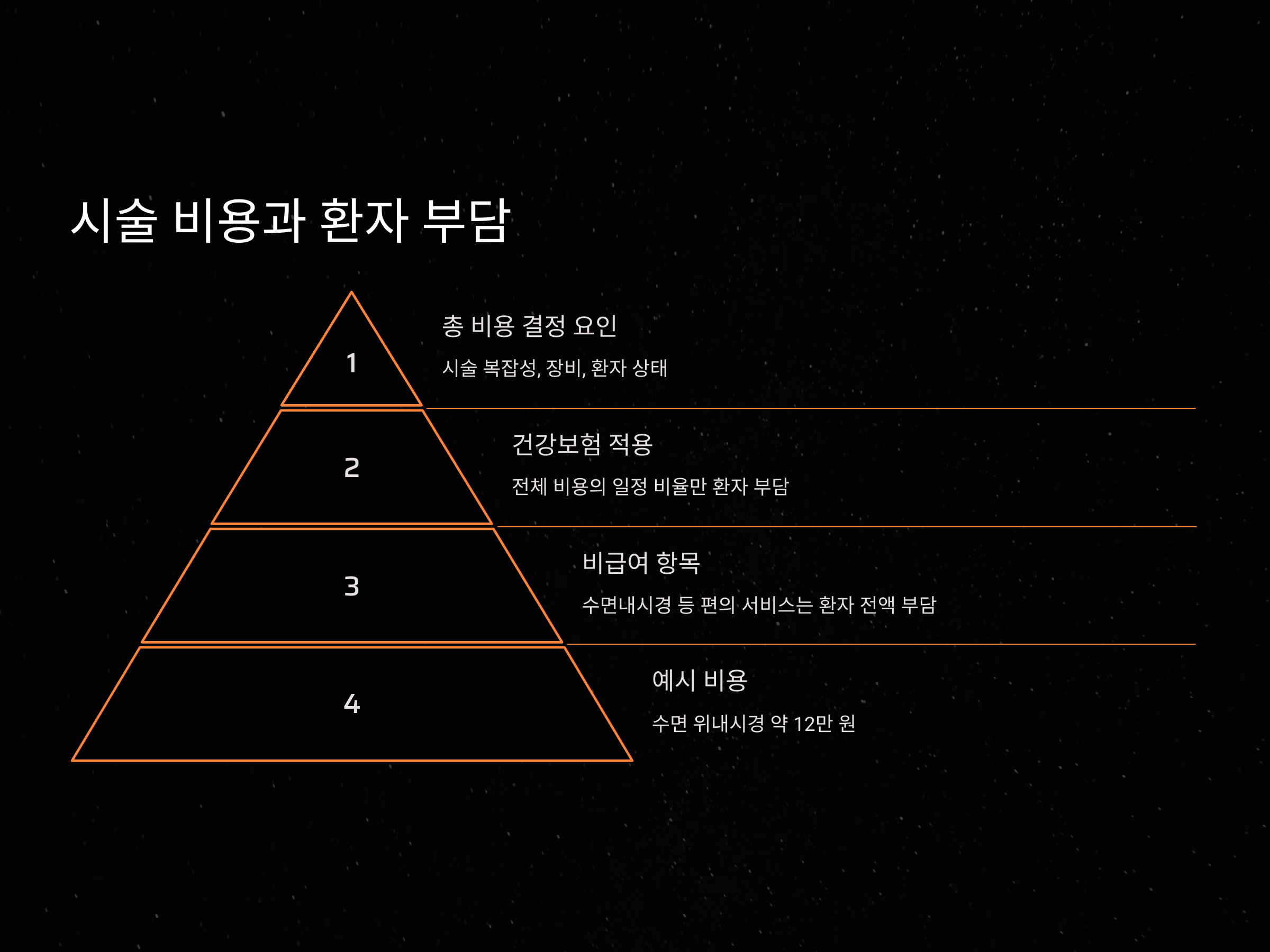 내시경적 확장술의 총 비용은 시술의 복잡성, 사용되는 장비, 환자의 상태 등에 따라 다릅니다. 건강보험이 적용되는 경우, 환자는 전체 비용의 일정 비율만 부담하게 됩니다. 그러나 수면내시경과 같은 추가적인 편의 제공 서비스는 비급여 항목으로 분류되어 환자가 전액 부담해야 할 수 있습니다.