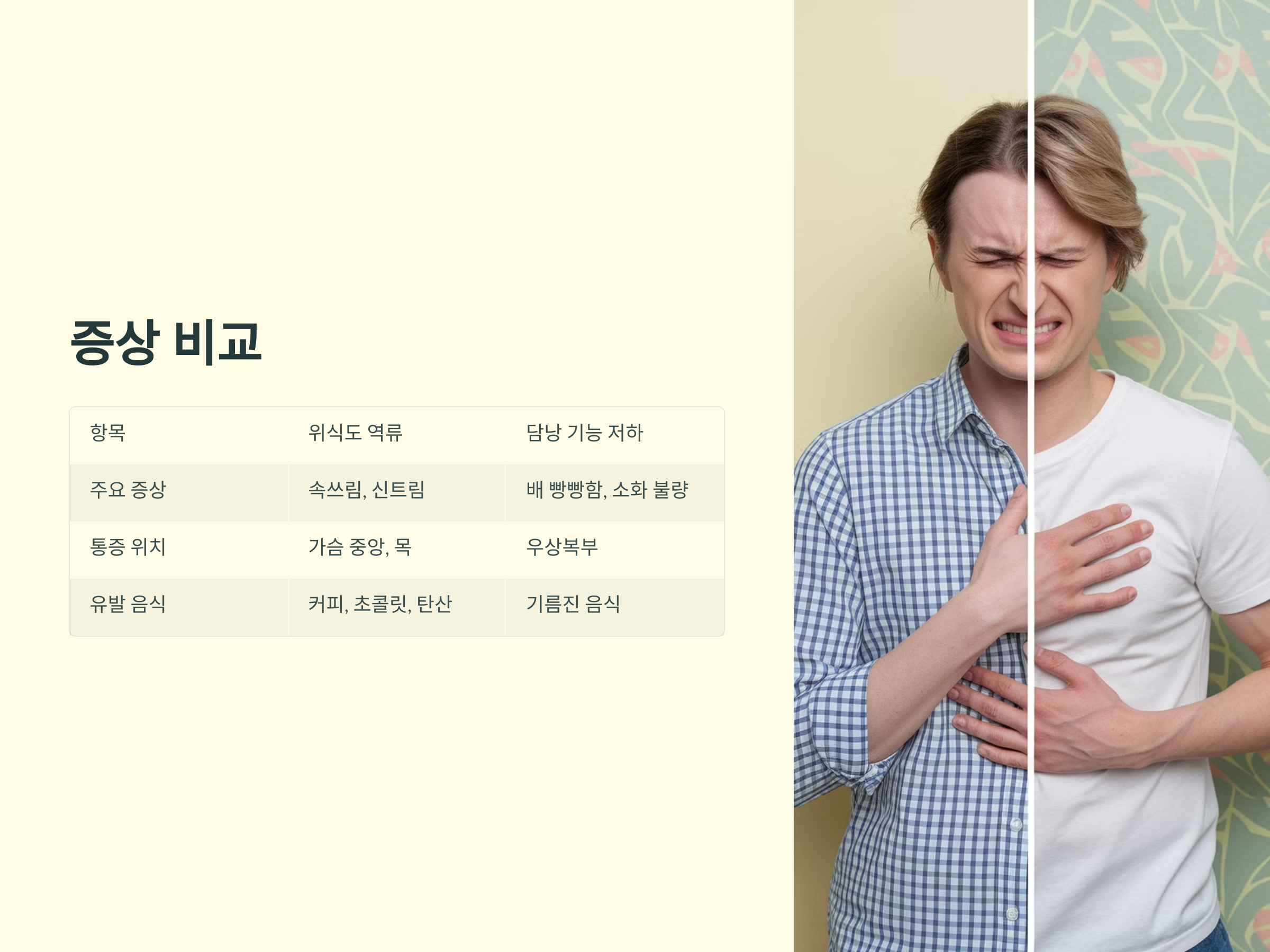 위식도 역류 vs 담낭 기능 저하 비교