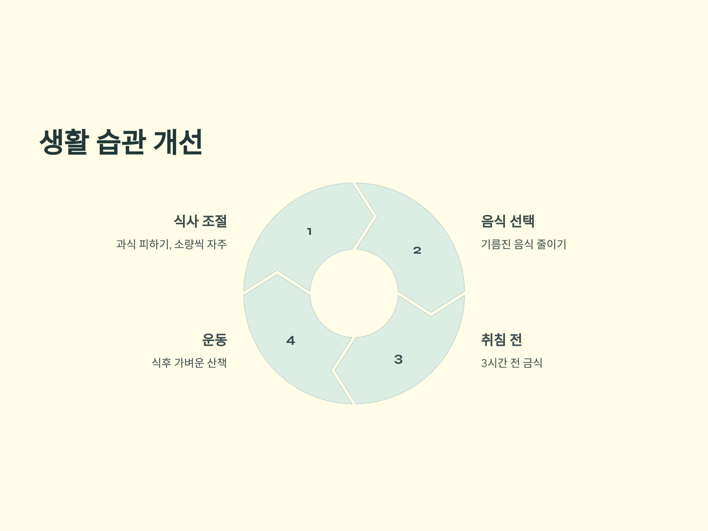 - 생활 습관 개선: 기름진 음식 줄이고, 자기 3시간 전 금식