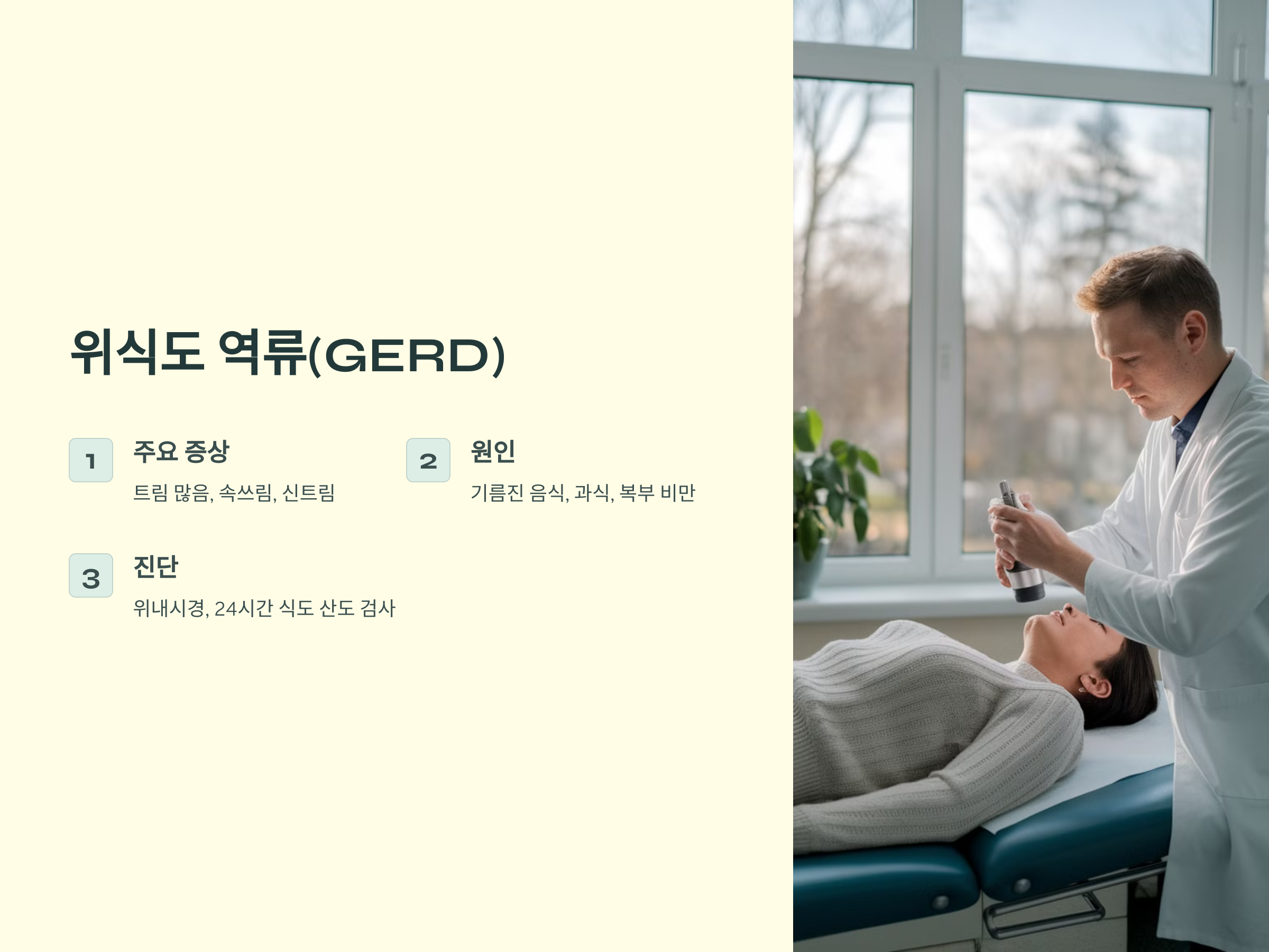 위산이 식도로 역류하면서 여러 불편한 증상을 유발하는 소화기 질환입니다.