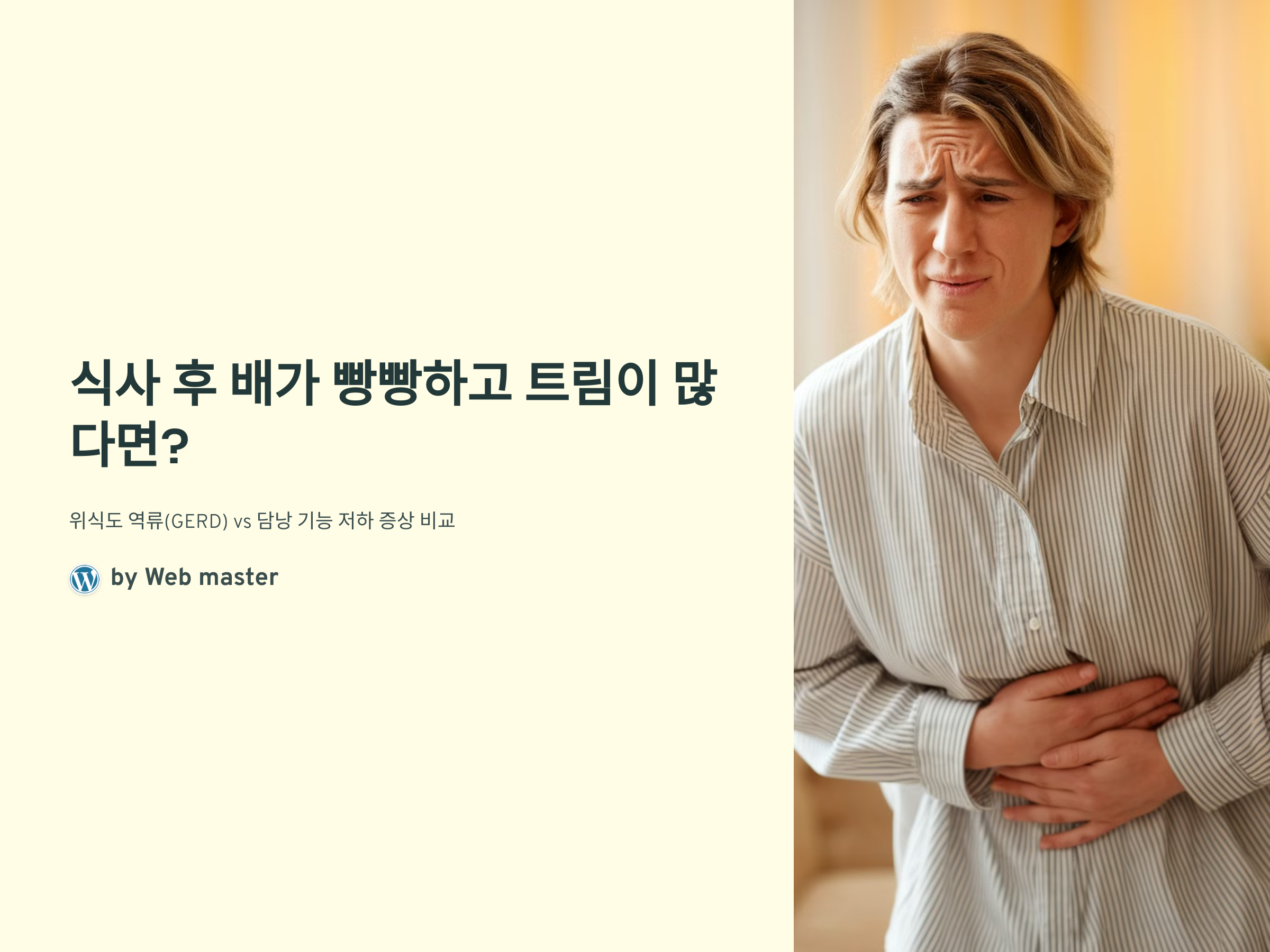 식사 후 배가 더부룩하고 트림이 많다면, 위식도 역류(GERD) 또는 담낭 기능 저하(담즙 정체)가 원인일 수 있습니다. 두 질환은 증상이 겹칠 수 있지만, 차이점을 잘 파악하면 원인을 찾는 데 도움이 됩니다.