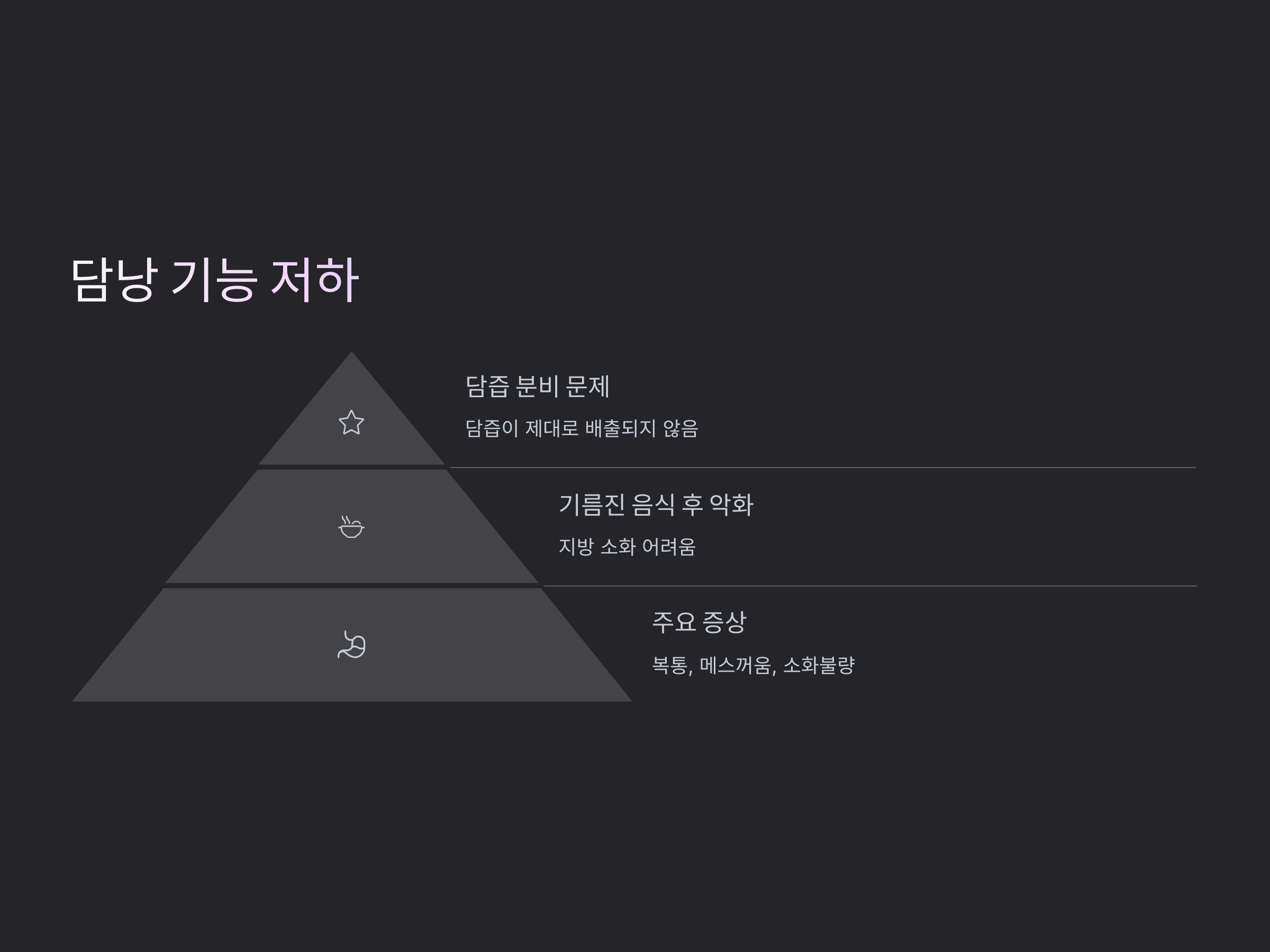 담낭 기능 저하로 인해 나타나는 증상은 일반적으로 기름진 음식을 섭취한 후 심해지며, 식사 후 배가 가득 차고 트림이 자주 나오는 경향이 있습니다. 또한, 담즙이 제대로 분비되지 않으면 소화불량, 복통, 메스꺼움 등의 증상도 함께 나타날 수 있습니다.