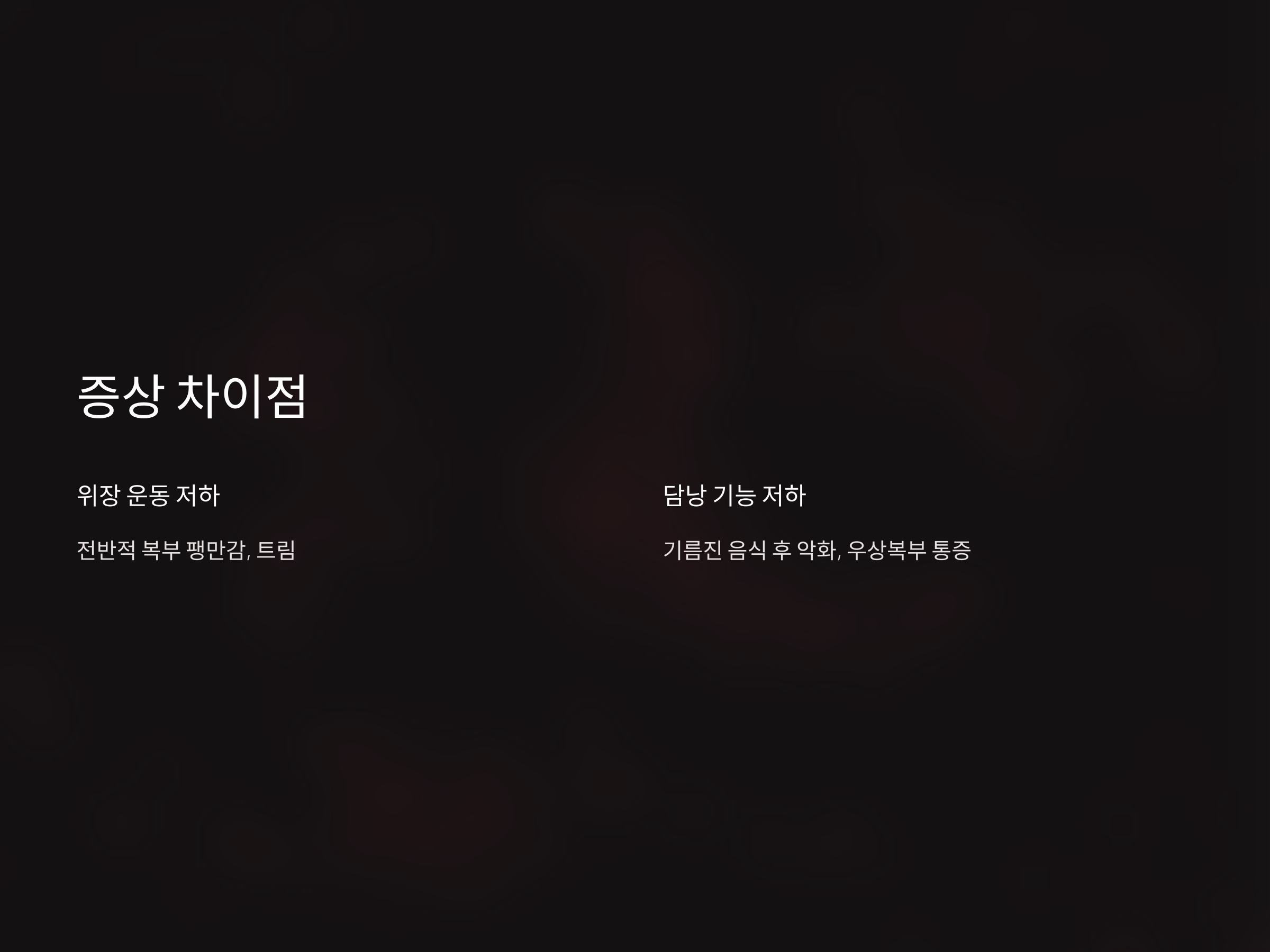 위장 운동 저하와 담낭 기능 저하는 각각 다른 치료 방법이 필요합니다.