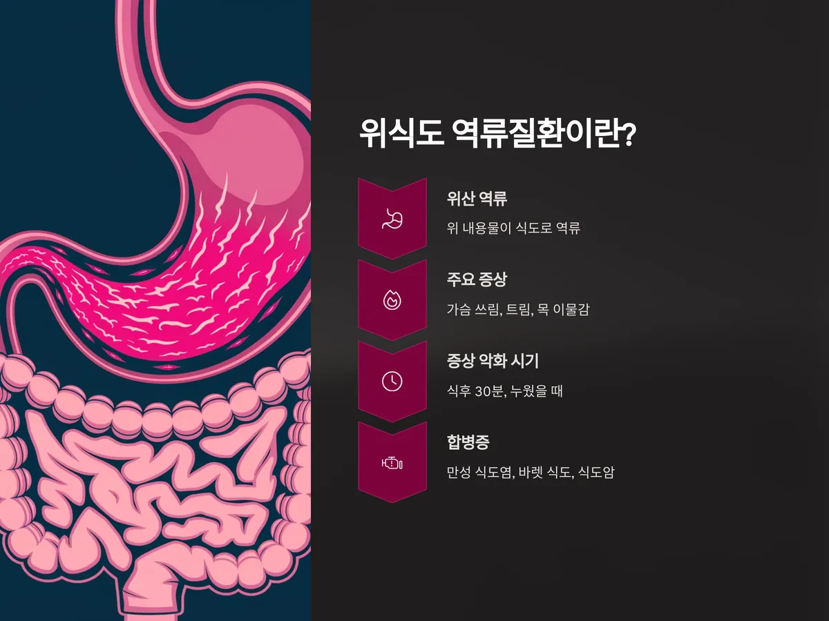 이 질환은 단순 불편감을 넘어서 만성 식도염, 바렛 식도, 심하면 식도암으로 발전할 수 있어 조기 관리가 중요합니다. 치료는 위산 분비 억제제(PPI) 복용과 생활습관 교정을 병행하며, 심한 경우에는 수술이 고려되기도 합니다.