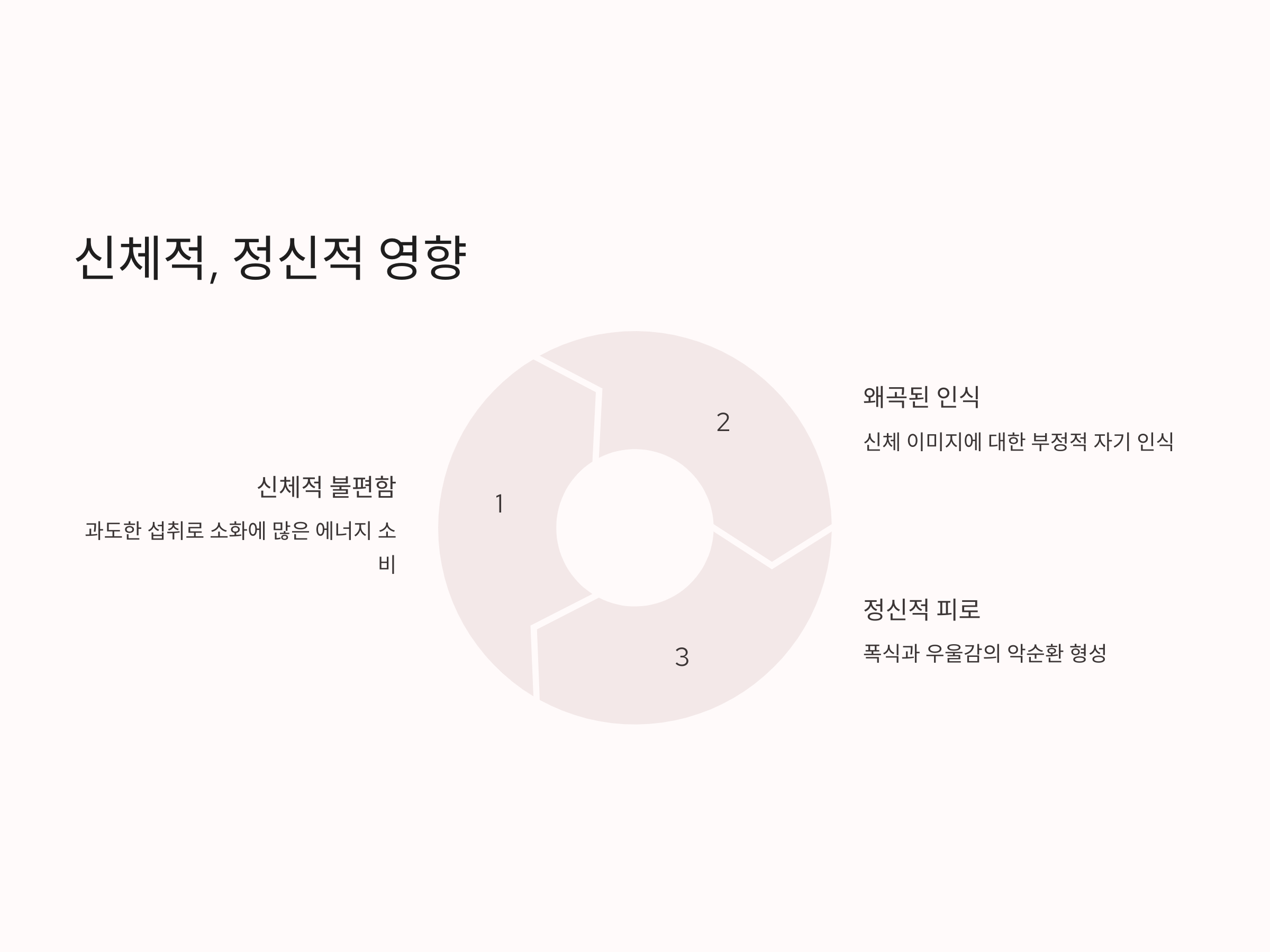 폭식증은 신체와 정신에 모두 영향을 미치는 복합적인 질환입니다. 과도한 음식을 섭취하면 신체는 이를 소화하는 데 많은 에너지를 소비하며, 이로 인해 피로감과 불편함을 느끼게 됩니다. 이러한 신체적 불편함은 정신적인 스트레스를 유발하고, 결국 우울감으로 이어질 수 있습니다.