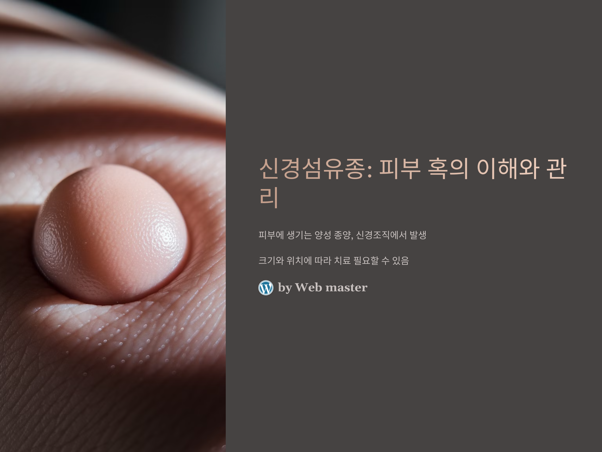 피부에 생기는 작은 혹이나 덩어리, 흔히 "신경섬유종"이라는 용어가 사용됩니다. 신경섬유종은 피부에 발생하는 양성 종양으로, 신경조직에서 발생하는 병변을 의미합니다. 일반적으로는 큰 위험을 동반하지 않지만, 그 크기나 위치에 따라 치료가 필요할 수 있습니다. 이 글에서는 신경섬유종의 발생 원인, 증상, 치료법 등 핵심 정보를 제공합니다. 또한 피부에 신경섬유종이 발생했을 때 유의해야 할 점들을 상세히 다룰 예정입니다. 이를 통해 정확한 정보를 습득하고, 적절한 대처 방법을 마련할 수 있을 것입니다.