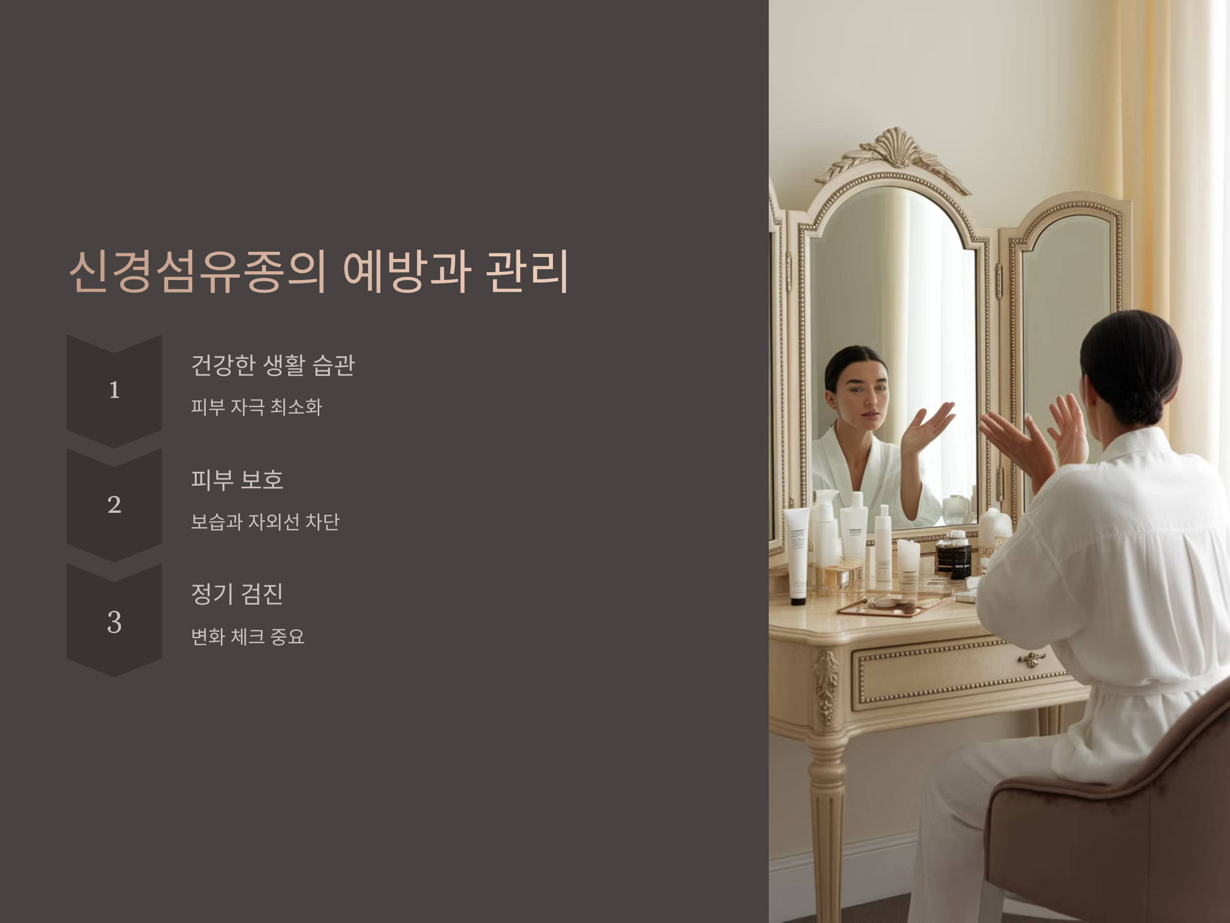 신경섬유종을 관리하는 데 있어 중요한 점은 정기적인 검진입니다. 특히 유전적인 요인이 있는 경우, 정기적인 병원 방문을 통해 신경섬유종의 크기나 변화를 체크하는 것이 중요합니다. 또한, 피부를 자주 확인하고, 혹이 발생하면 즉시 병원을 방문하여 전문가의 진단을 받는 것이 필요합니다.