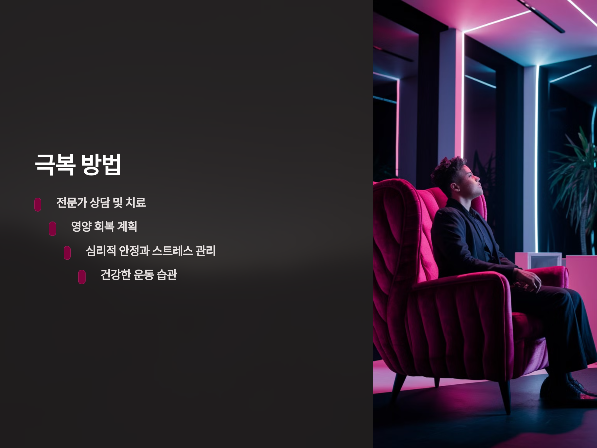 신경성 식욕부진을 극복하기 위해서는 전문적인 치료와 함께 생활 습관의 변화가 필요합니다.