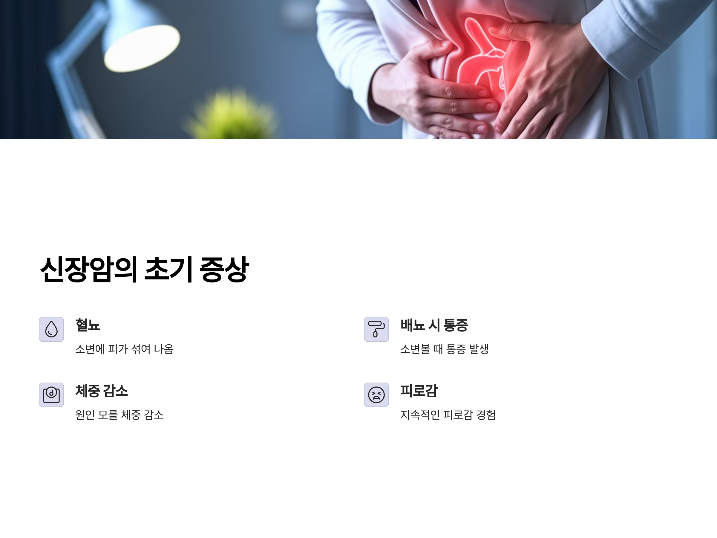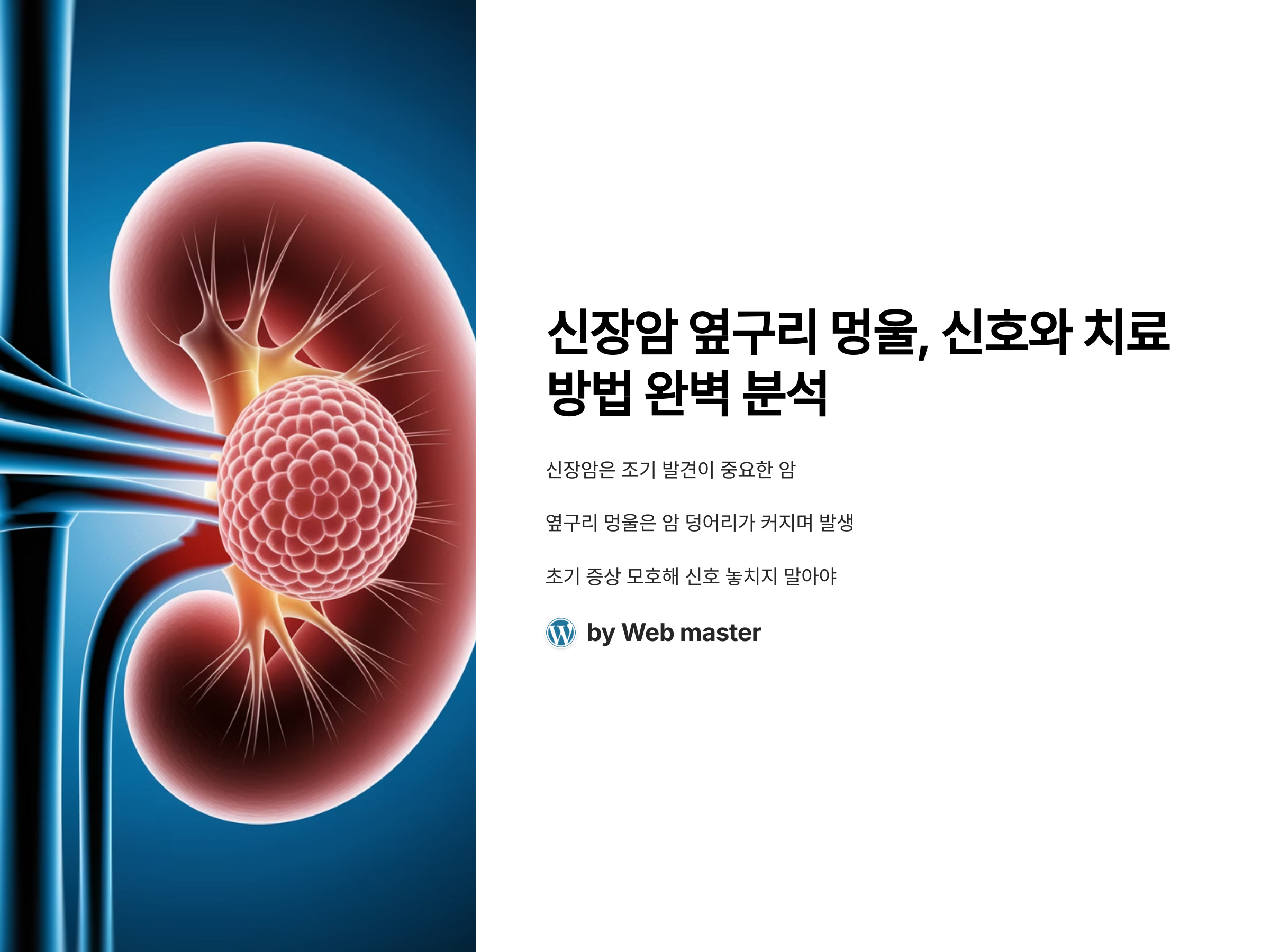 신장암은 자주 눈에 띄지 않지만, 조기 발견이 중요한 암 중 하나입니다. 그중에서도 신장암이 진행될 때 옆구리에 멍울이 생기는 경우가 종종 있습니다. 이는 신장에 생긴 암 덩어리가 커지면서 주변 조직에 영향을 미쳐 발생할 수 있는 증상입니다. 본 포스트에서는 신장암과 옆구리 멍울 사이의 관계, 이 증상들이 나타나는 이유와 함께 적절한 치료 방법을 소개합니다. 최신 연구에 따르면 신장암은 초기 증상이 모호하므로 이러한 신호를 놓치지 않고 조기에 대응하는 것이 중요합니다.