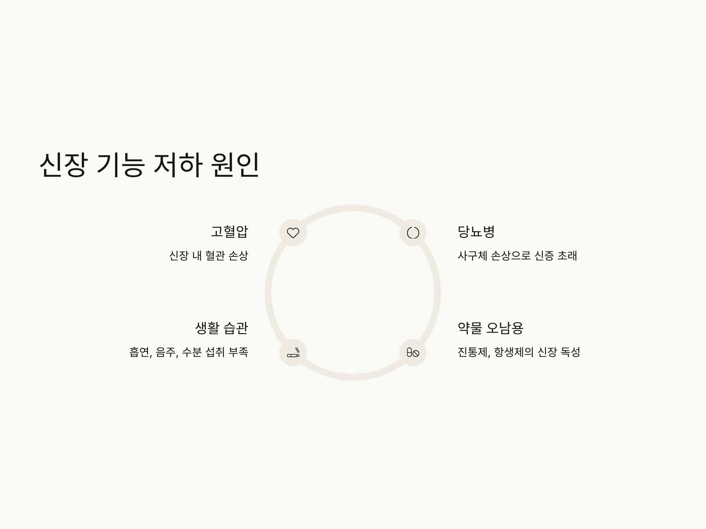 - 고혈압: 지속적인 고혈압은 신장 내 혈관을 손상시켜 기능 저하를 유발할 수 있습니다.