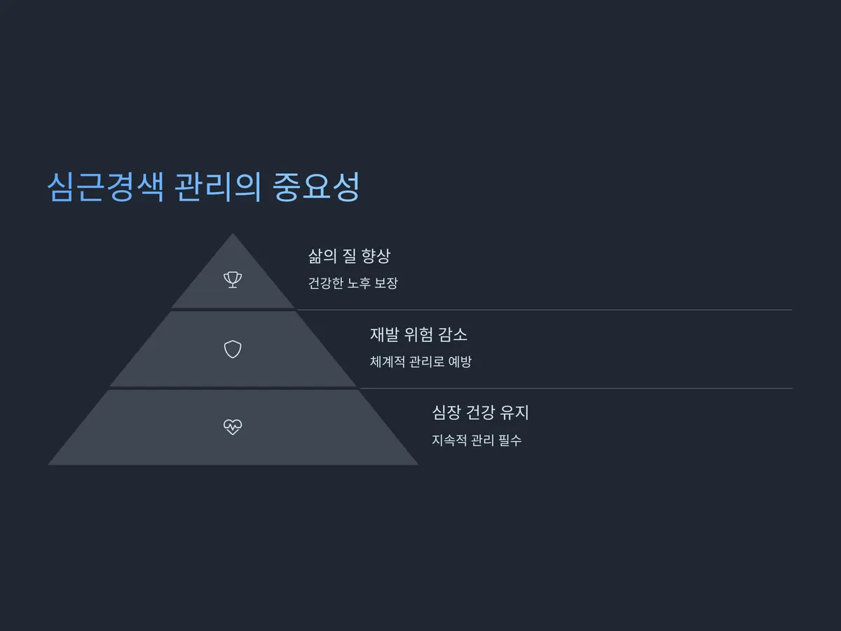 심근경색은 완치가 아니라 관리의 질에 따라 생존과 삶의 질이 결정됩니다. 오늘부터라도 이 체크리스트를 삶에 적용한다면, 여러분의 심장은 더 오랫동안 건강하게 뛸 수 있을 것입니다.